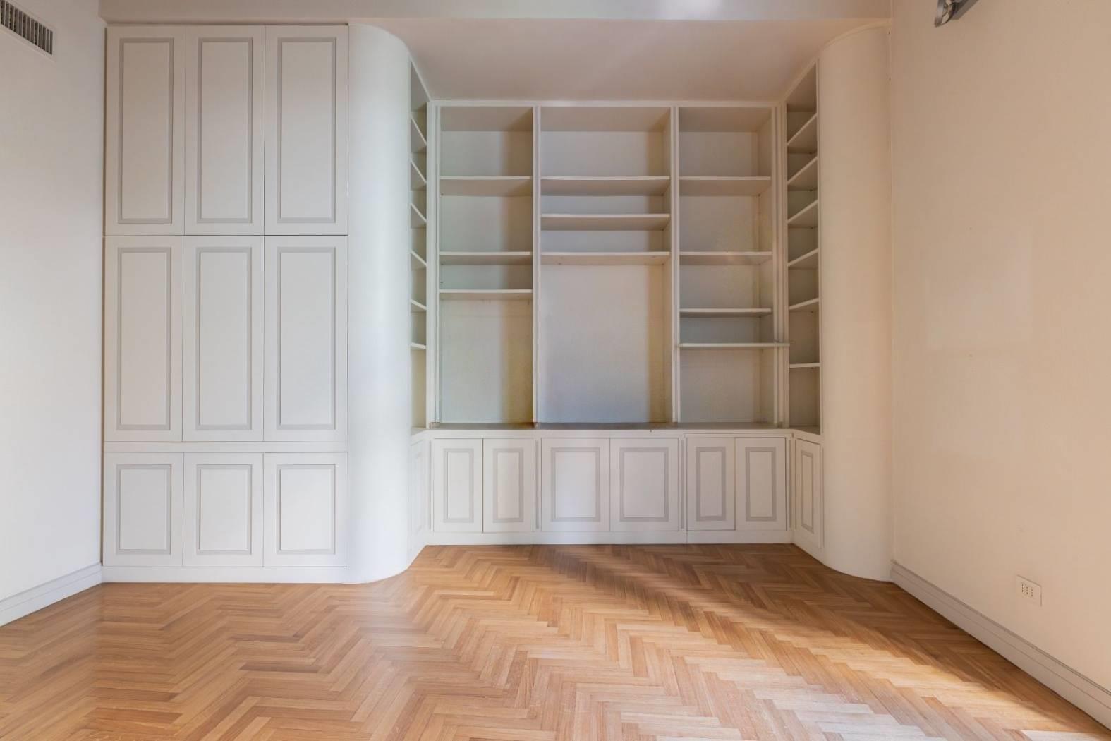 I soffitti a cassettoni in legno, alti in alcuni stanze oltre cinque metri, conferiscono grande prestigio, mentre il pavimento in parquet, presente in tutta la casa, aggiunge un tocco di calore ed eleganza all’appartamento.