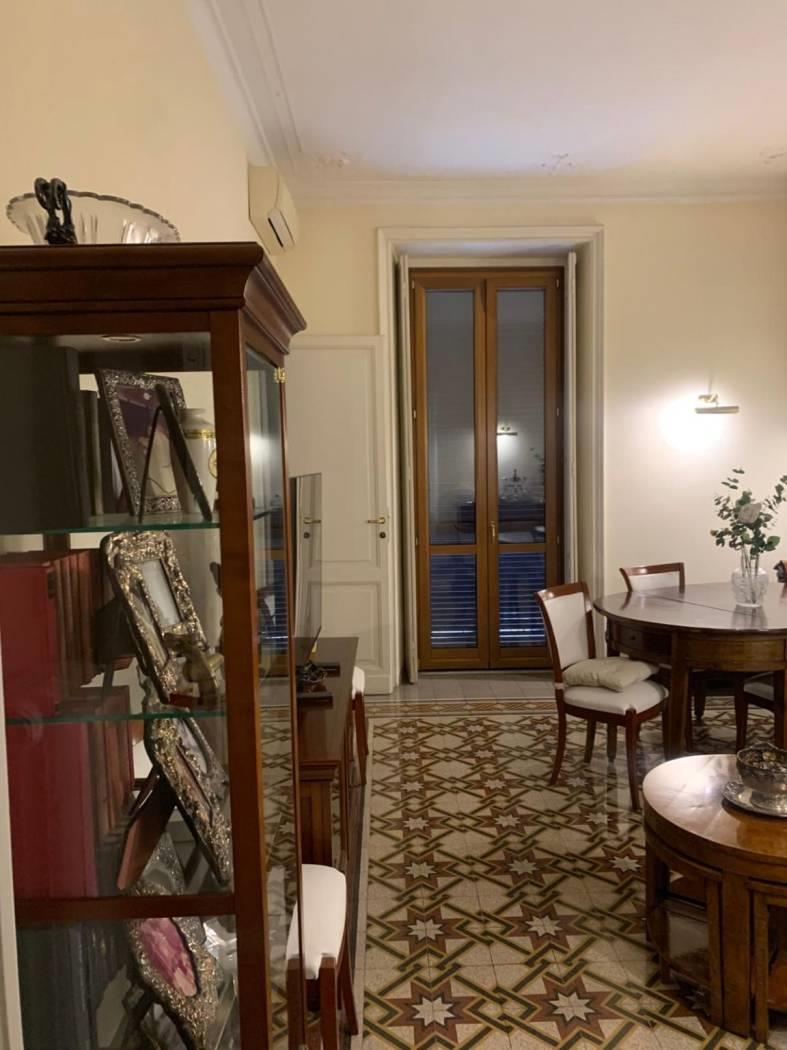 Centro Storico Via Giosuè Carducci in stabile signorile con portiere elegante appartamento silenzioso luminoso completamente ristrutturato ingresso ampio salone due camere doppi servizi cucina abitabile arredata balcone parquet in tutta la casa armadi a muro climatizzato.