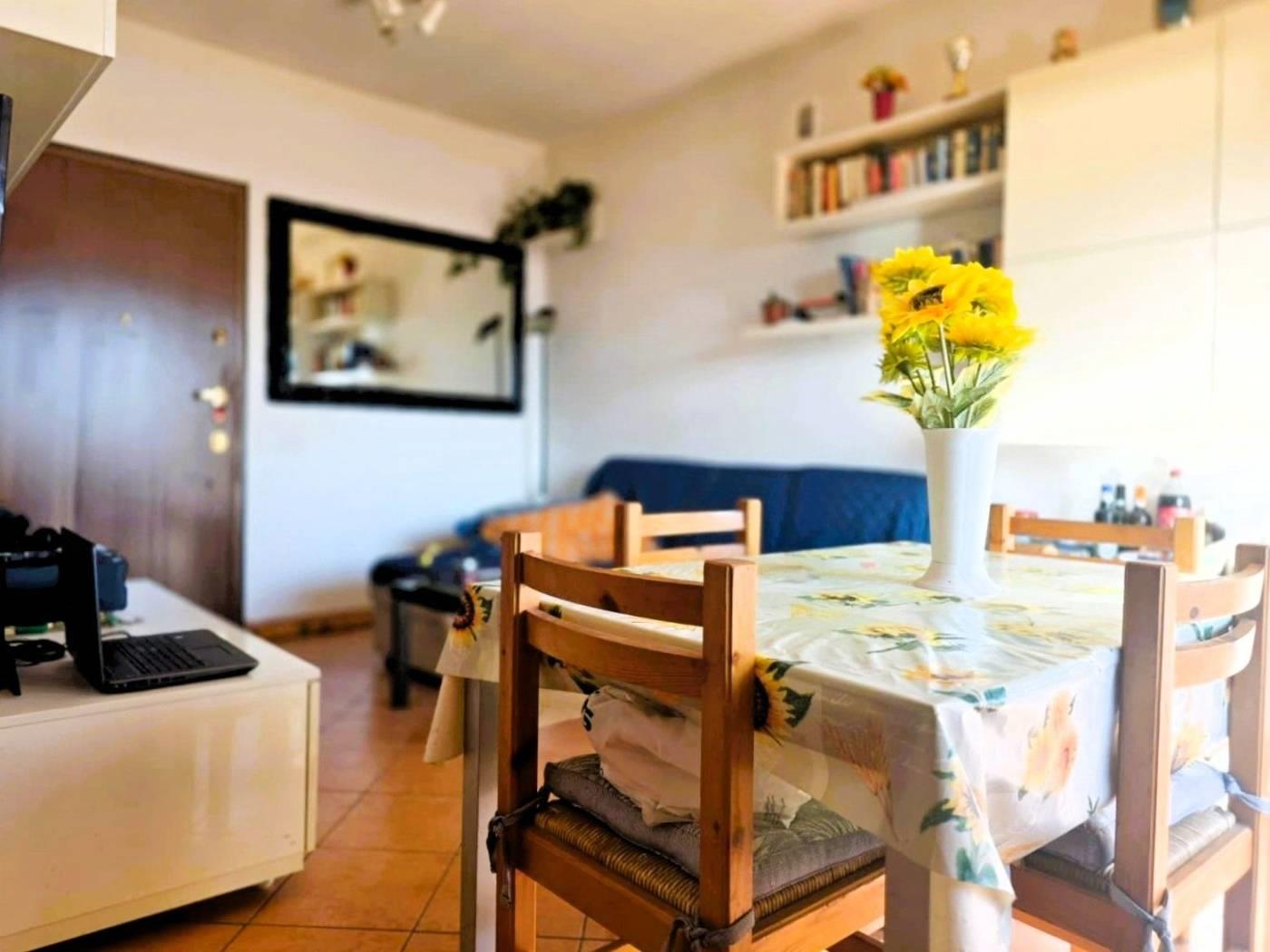 L’immobile di circa 50 mq è disposto in soggiorno con angolo cottura arredato, disimpegno, camera da letto matrimoniale, bagno, lavanderia, e balcone.