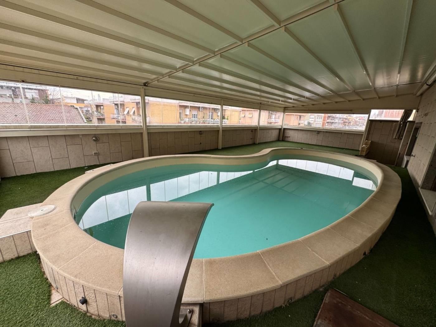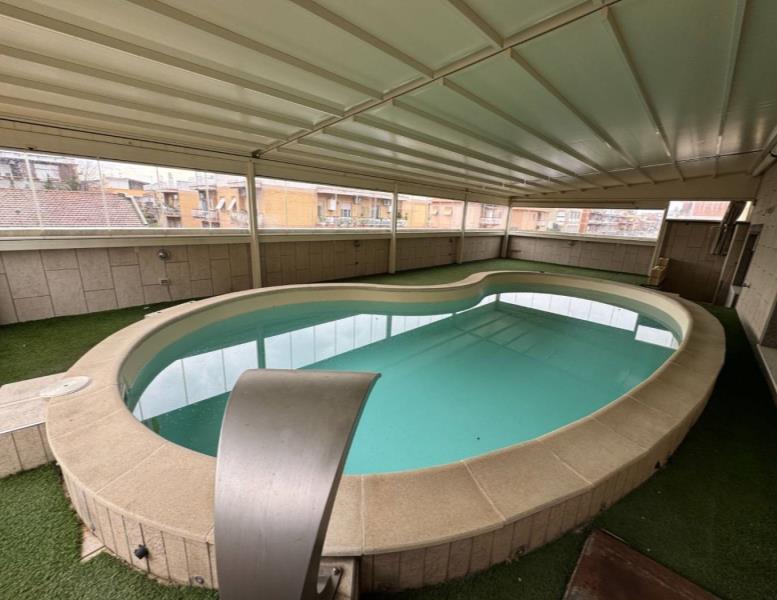L'immobile sempre al secondo piano ha una terrazza coperta dove abbiamo una meravigliosa piscina con vista diretta su Via Di Morena.