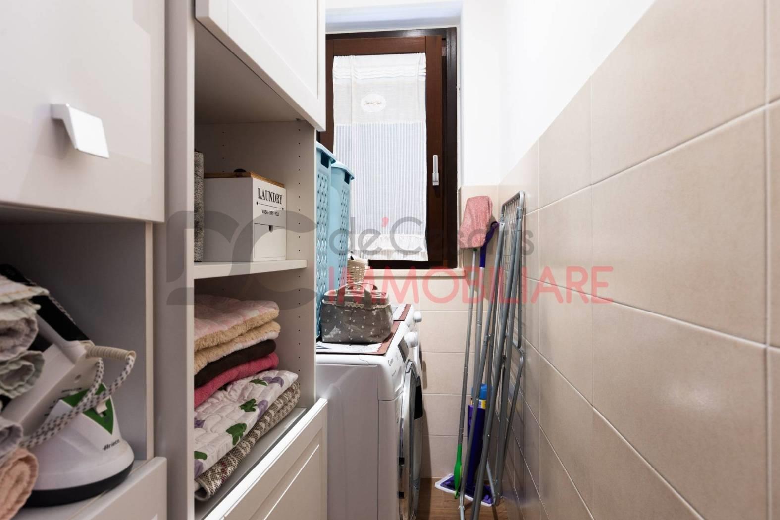 soggiorno con angolo cottura ed accesso diretto sull' esterno, bagno dotato di box doccia, ripostiglio, camera con balcone di servizio, lavanderia (con possibilità di ricavare secondo bagno essendo presenti allacci e predisposizioni) e camera da letto matrimoniale.