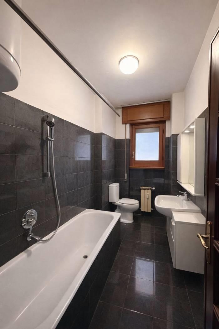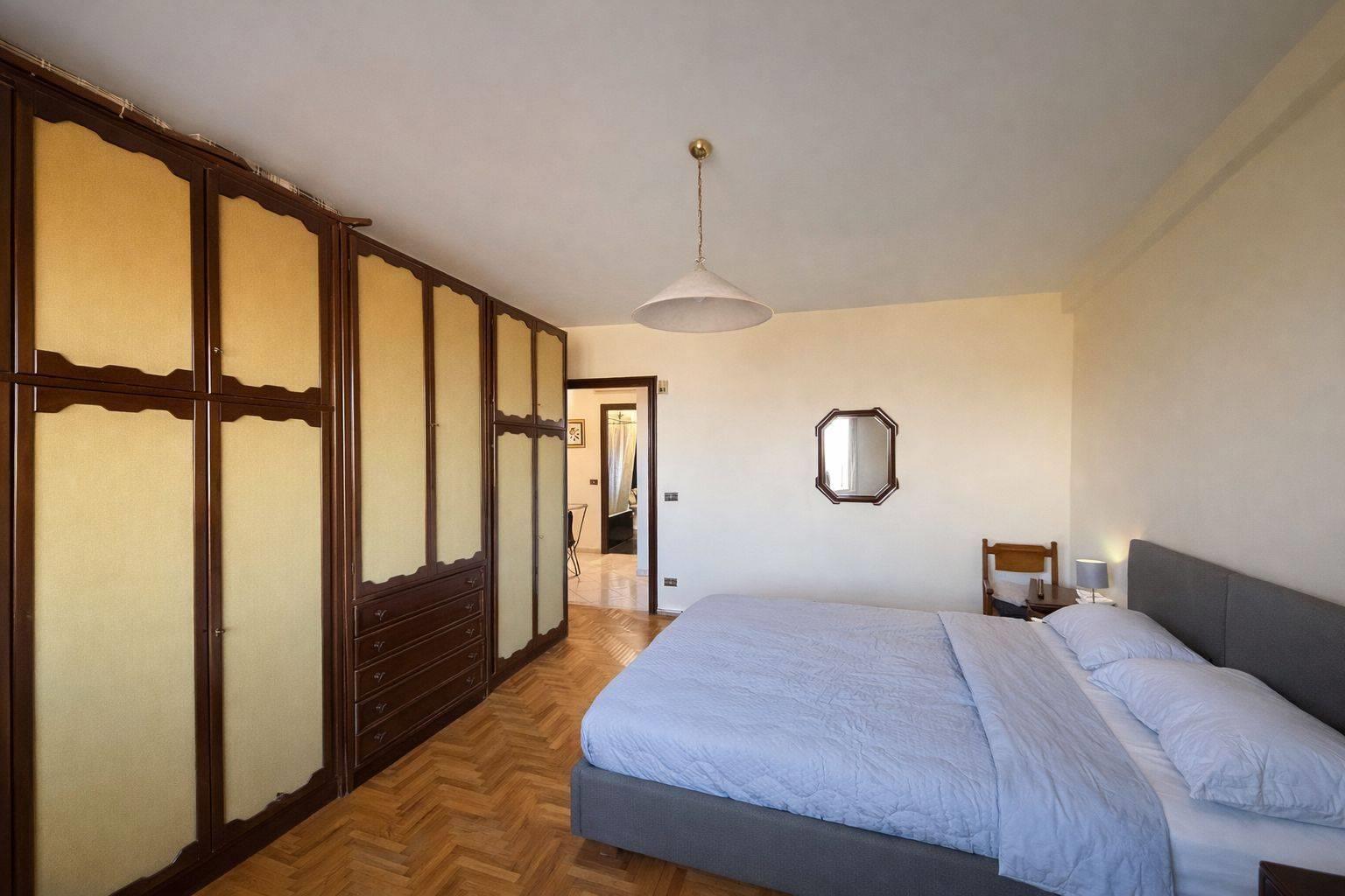 Zona Notte: Disimpegno ottimizzato con armadi a muro, spaziosa camera matrimoniale, seconda camera da letto e doppi servizi (uno con vasca e uno con box doccia).