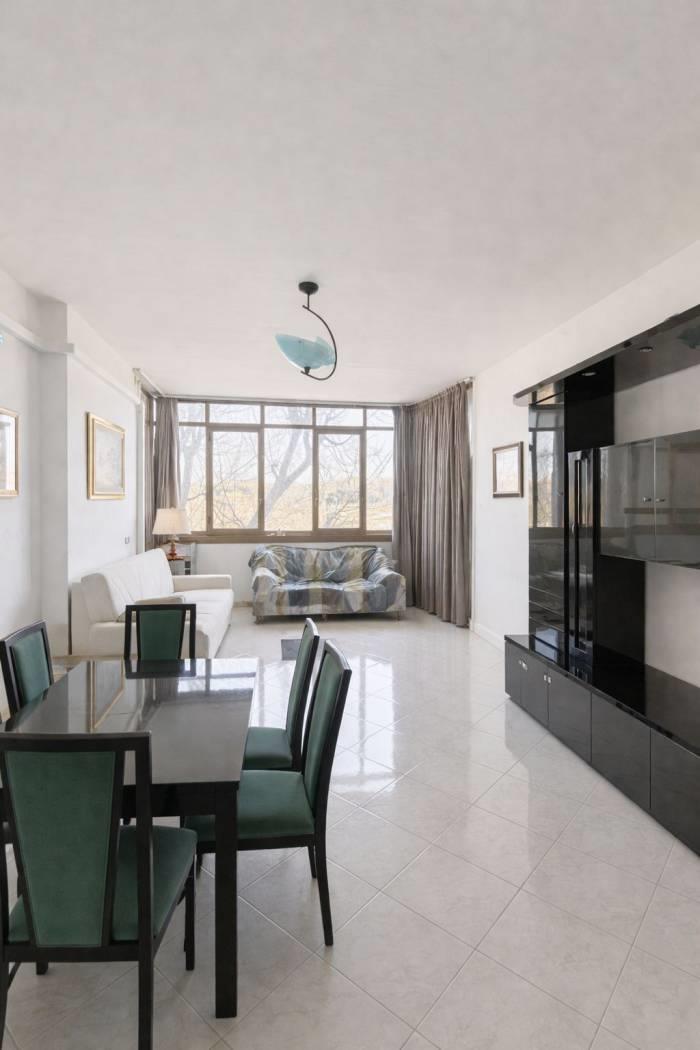 Zona Giorno: Ingresso accogliente, salone caratterizzato da una grande finestra panoramica con vista suggestiva sul Parco dei Fauni e cucina abitabile con accesso diretto a un balcone.