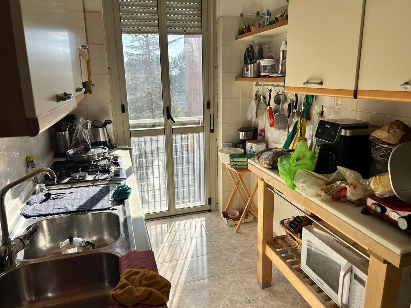 L’immobile è composto da un ampio soggiorno con accesso al balcone, cucina semiabitabile, disimpegno, due camere da letto e due bagni, di cui uno finestrato. Completano la proprietà due balconi complessivi, che garantiscono ottima luminosità e una piacevole aerazione naturale durante tutto l’arco della giornata. L'immobile risulta essere silenzioso, con affaccio nel verde.