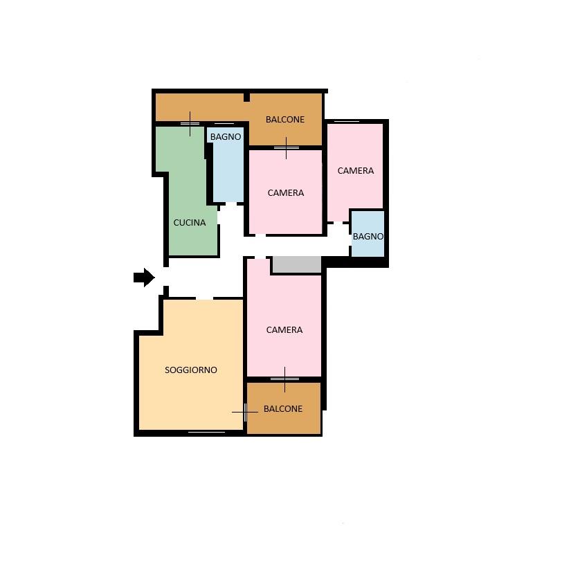 L’immobile si compone di ingresso, soggiorno luminoso, cucina abitabile, due spaziose camere matrimoniali e una cameretta, doppi servizi – di cui uno finestrato con vasca – e due balconi con doppio affaccio, che garantiscono ottima luminosità e una piacevole vista sul verde pubblico.