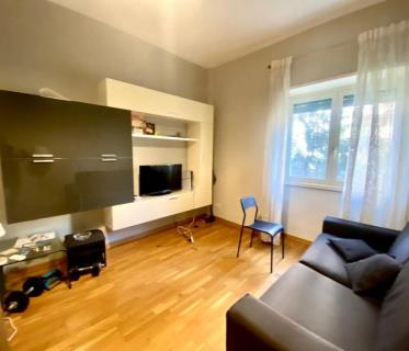 Appartamento arredato composto da ingresso, soggiorno a vista con angolo cottura, due camere, disimpegno, due servizi, terrazzo coperto e ampio giardino pavimentato. Posto auto condominiale secondo disponibilità.