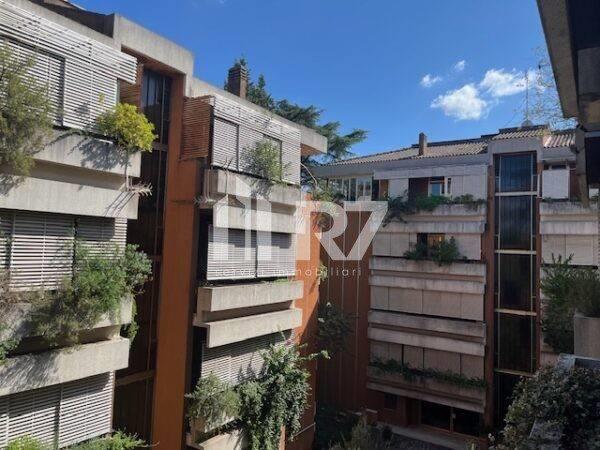 In condominio signorile con servizio di portineria, immerso nel verde, proponiamo appartamento posto al 3° piano, con tripla esposizione, di 140 mq circa composto da: due ingressi, salone doppio, due camere da letto, cucina abitabile, tripli servizi, un terrazzo di 27 mq circa prospiciente la zona giorno, due balconi per un totale di 26 mq uno prospiciente la cucina e l'altro la camera da letto. Completa la proprietà, rendendo interessante l'offerta un comodo posto auto coperto di 14 mq.