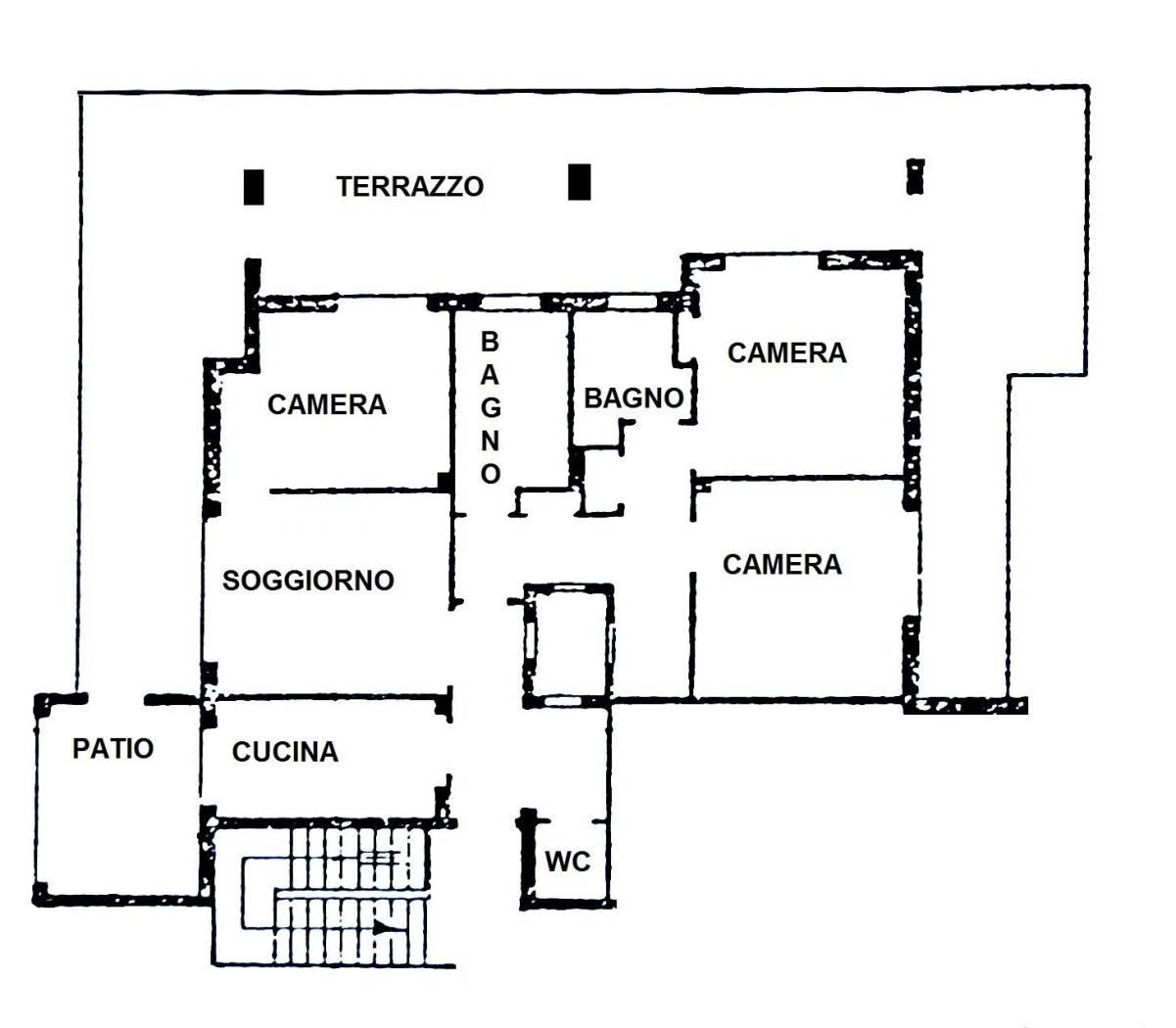 Superficie di 125 mq con ampi terrazzi: ingresso, soggiorno, cucina, tre camere matrimoniali, due bagni e servizio. L’immobile è in buono stato manutentivo originale e dotato di impianto di climatizzazione. Termoautonomo con caldaia. Porta blindata. Inferiate. Già fornito anche di cisterna dell’acqua con autoclave.