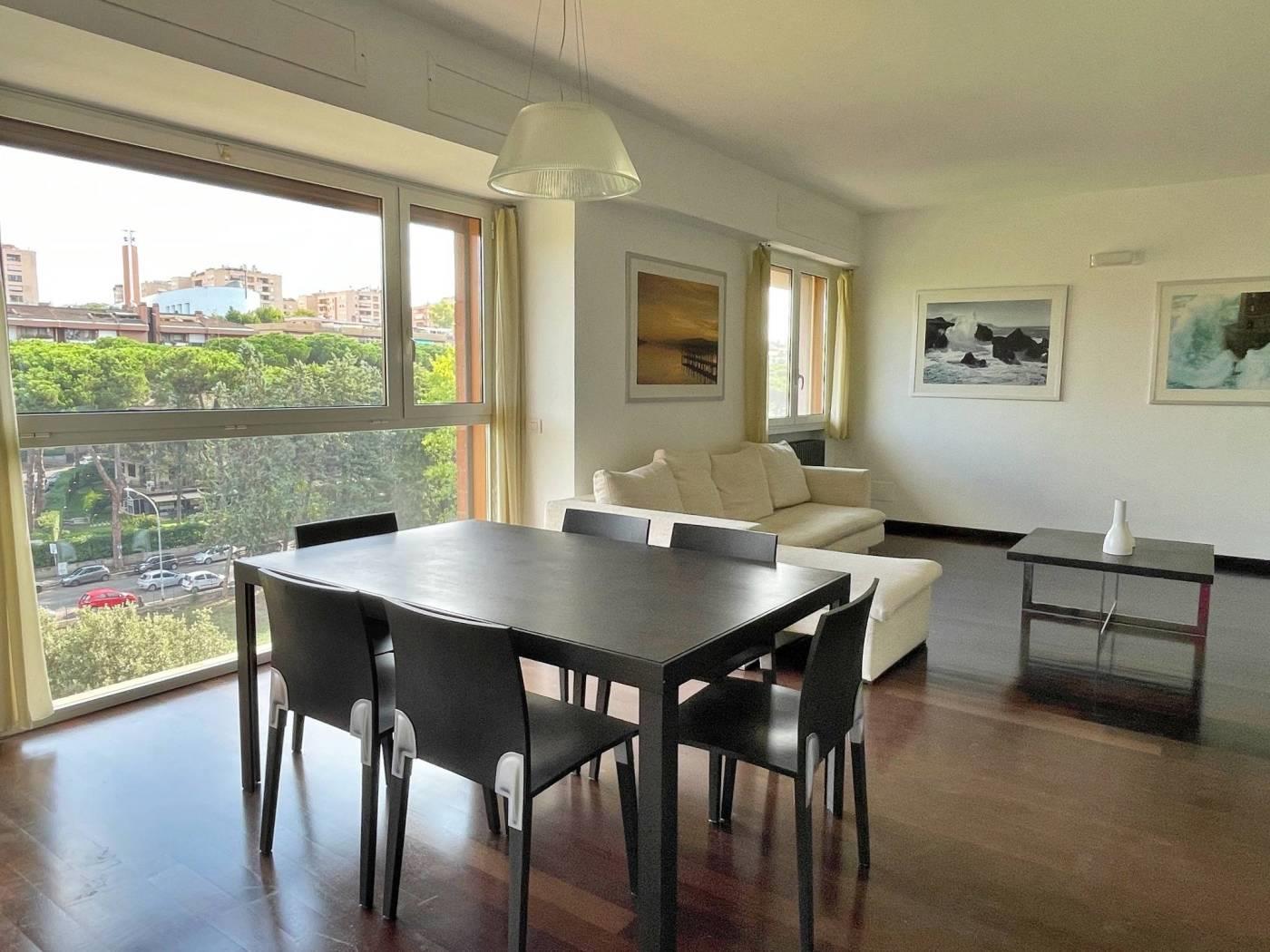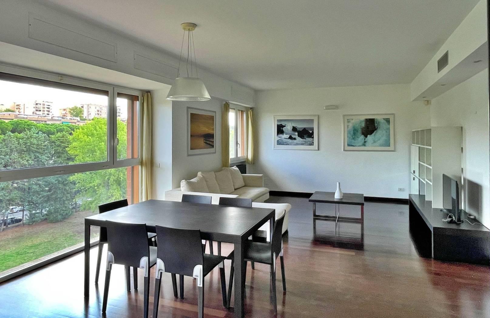 A pochi minuti dal centro dell’Eur e dal Centro Commerciale Euroma2, in condominio signorile e tranquillo, con portiere e piscina, proponiamo un bellissimo appartamento completamente arredato, di circa mq. 125, posto al 5° ed ultimo piano, composto da salone con ampio angolo cottura, 2 camere da letto di cui una matrimoniale ed una singola, studio, 2 bagni di cui uno con vasca e l’altro con doccia, 2 terrazzini.