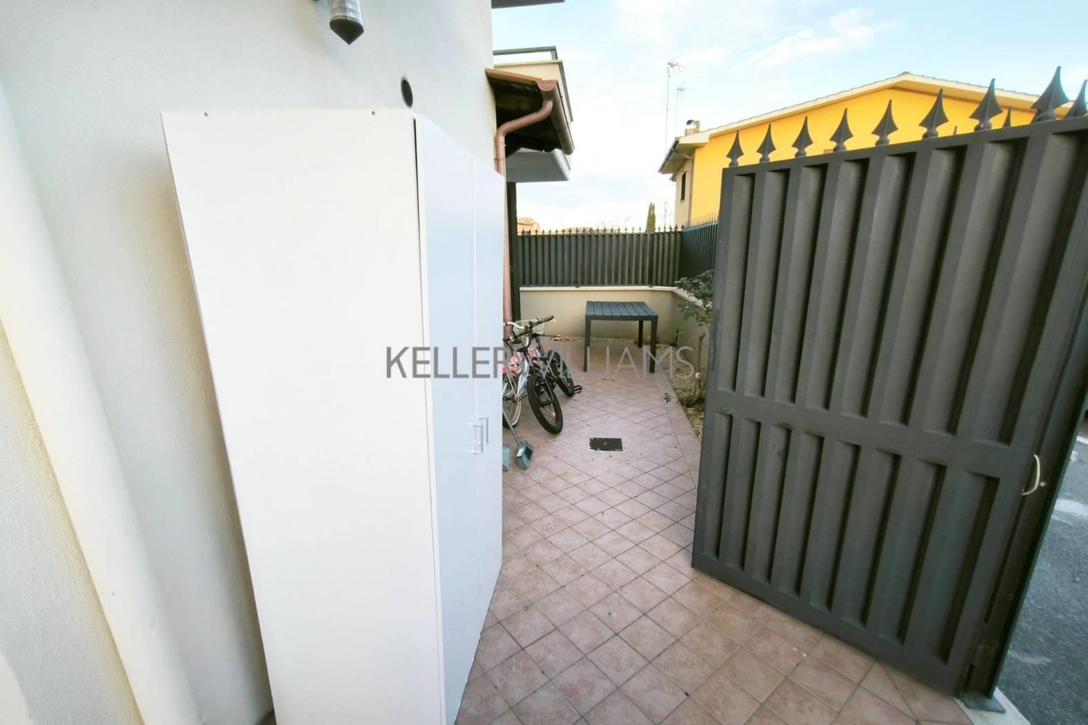 L'immobile offre anche un posto auto scoperto di circa 12 mq, con accesso diretto dalla strada tramite un cancello elettronico. Tra i comfort presenti, si segnala la porta blindata, il videocitofono, le grate di protezione in ferro battuto, soffitti in legno, persiane in ferro e tenda da sole motorizzata. L’appartamento è inoltre fornito di frigorifero, lavastoviglie e lavatrice, per garantire il massimo della funzionalità.