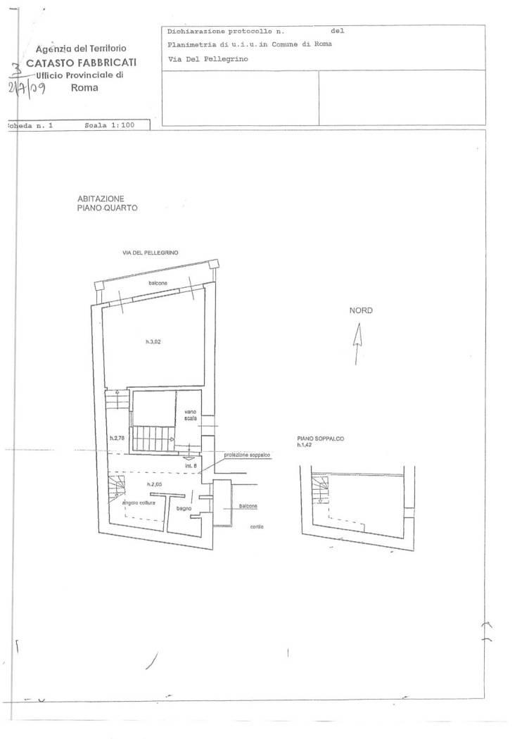 In pieno centro storico, nella cornice di Via di Monserrato, Via Giulia e Campo de’ Fiori, più precisamente in Via del Pellegrino, al 4° piano di un palazzetto storico senza ascensore, proponiamo la vendita di un delizioso appartamento con doppia esposizione, l’immobile è così composto: ingresso, soggiorno, angolo cottura con forno, frigo e lavatrice, camera soppalcata, bagno con doccia, 2 balconi di cui uno con affaccio su Via del Pellegrino. Riscaldamento autonomo, aria condizionata Daikin, persiane in ferro, porta blindata.
