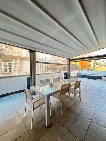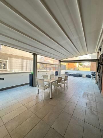 Affittasi appartamento situato al piano terra in Piazza di Cinecittà a pochi passi dalla fermata della metro A "Cinecittà" e da tutti i servizi principali . La casa, disponibile da subito, è composta da: soggiorno con angolo cottura, pratico e funzionale, camera da letto matrimoniale spaziosa e con cabina armadio, bagno finestrato, ampio terrazzo con tensostruttura nuova che lo copre per tre quarti: il vero punto di forza dell'immobile, uno spazio esterno generoso che circonda l'intero appartamento, ideale per momenti di relax o per chi ha animali domestici. Completa la proprietà un box con possibilità di armadiatura in fondo. L'annuncio è rivolto esclusivamente a professionisti, coppie o single con busta paga dimostrabile e redditi solidi.