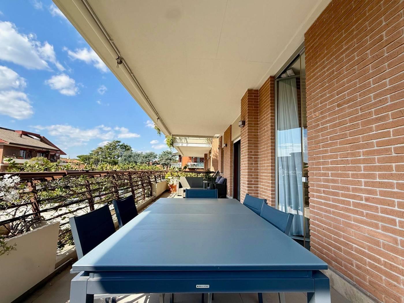 Elemento di assoluto pregio è lo splendido terrazzo perimetrale, ampio e vivibile, che abbraccia l’intera proprietà, offrendo uno spazio esterno raro da trovare, ideale per momenti di relax, cene all’aperto e convivialità.