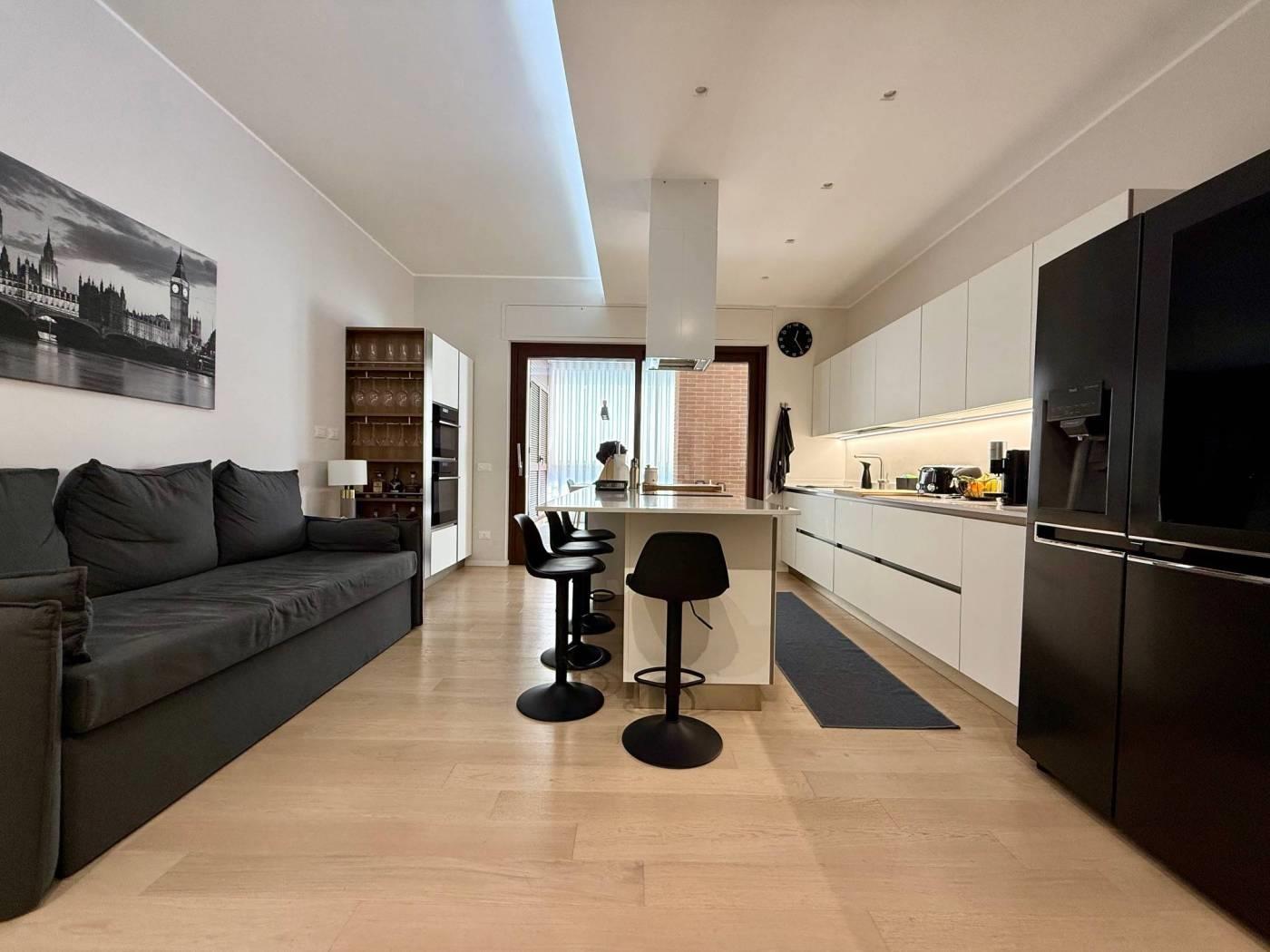 Gli interni, caratterizzati da finiture moderne e di alta qualità, presentano una distribuzione degli spazi funzionale e armoniosa: l’ingresso si apre su un ampio soggiorno con grandi vetrate che donano luminosità costante, affiancato da un angolo cottura con cucina a induzione.