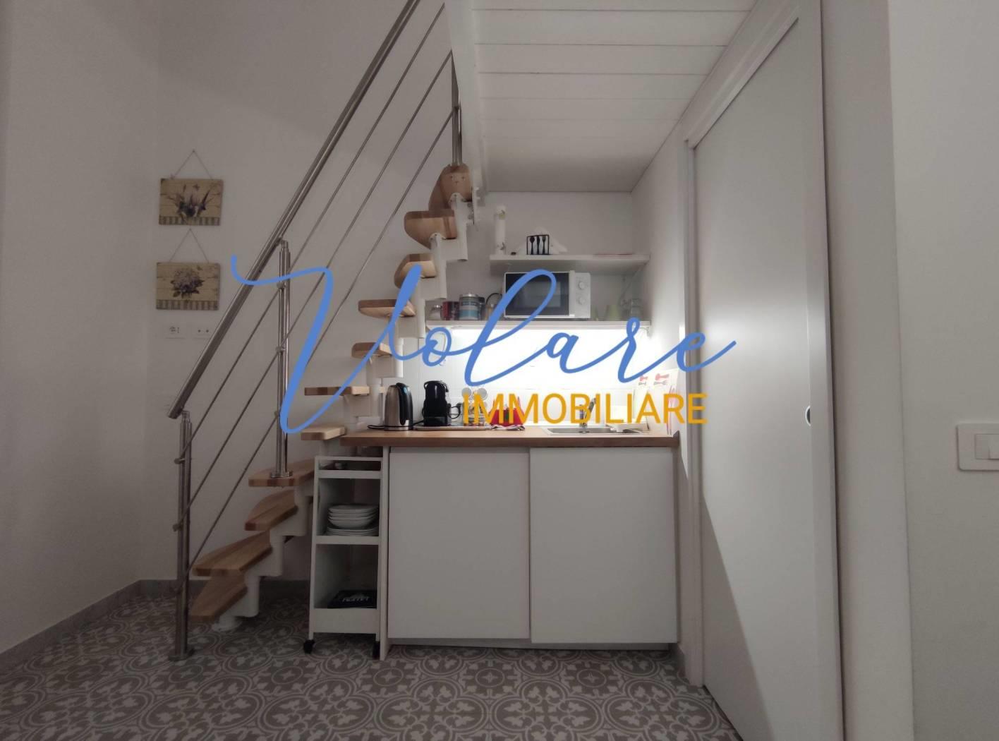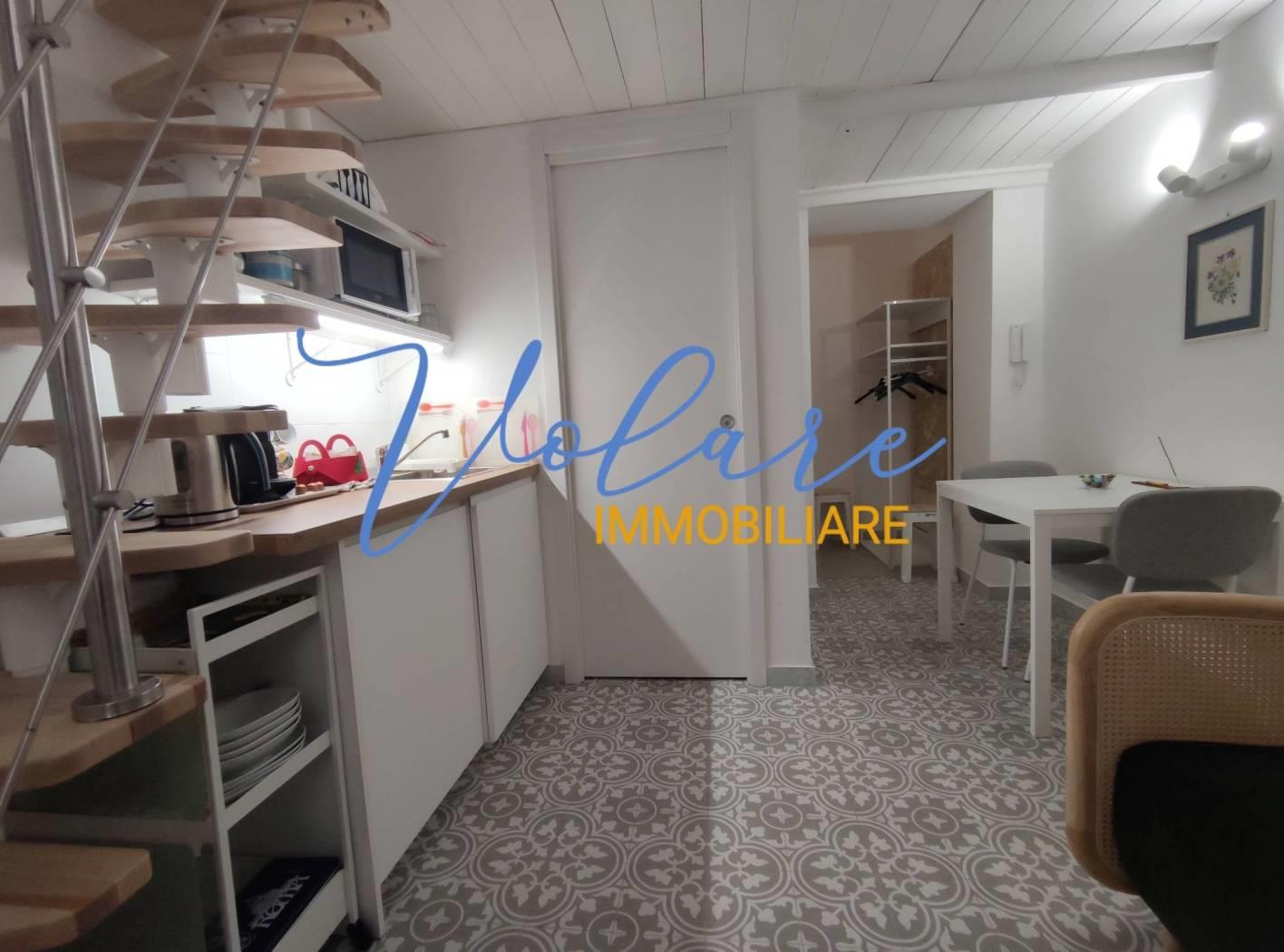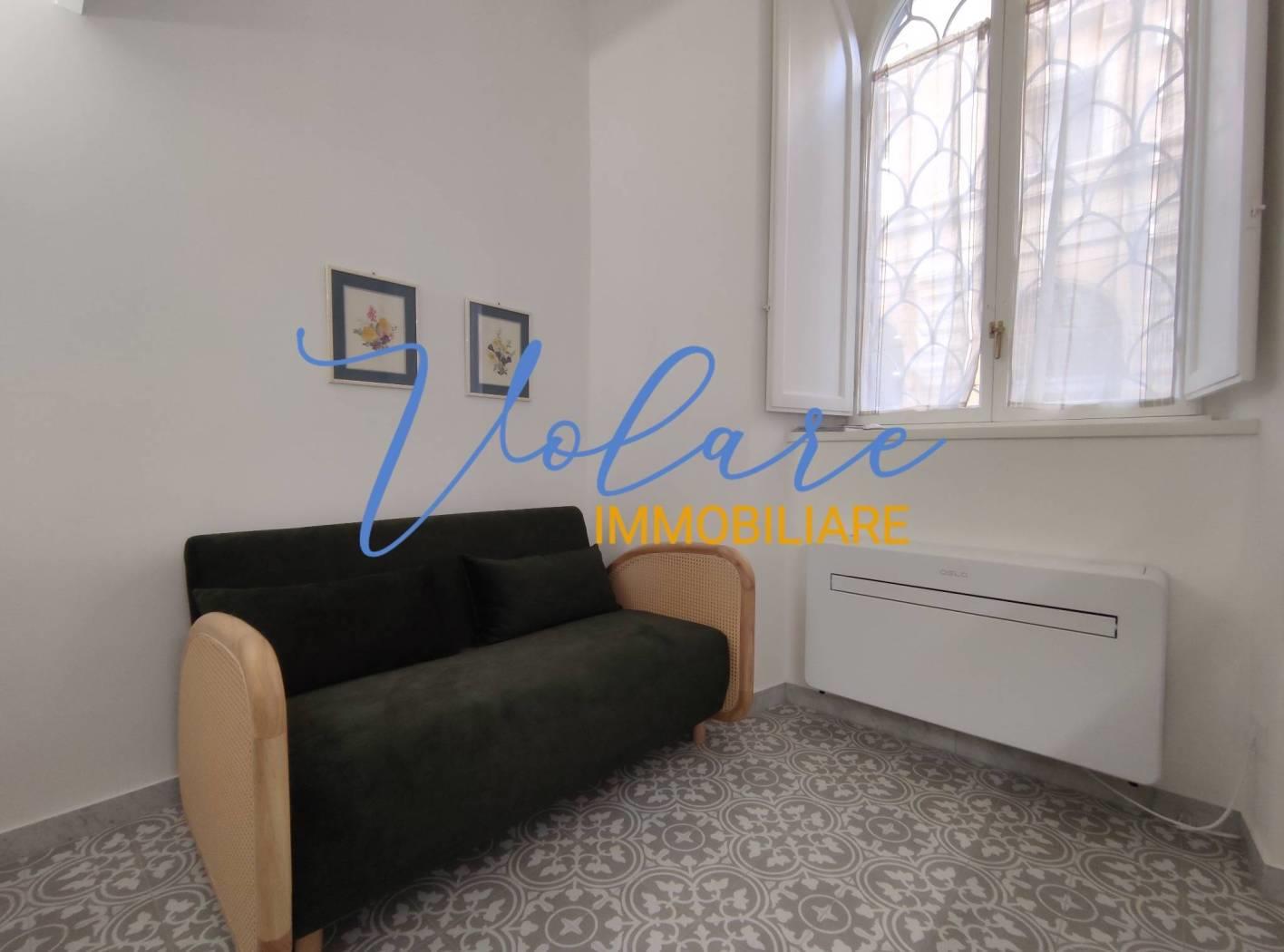 In posizione centralissima, tra Via XX Settembre e Via Nazionale, più precisamente in Via Modena, Volare Immobiliare propone in locazione un delizioso monolocale totalmente arredato. L'immobile è situato al piano rialzato di un signorile palazzo di epoca umbertina ed è accessibile dall'androne tramite una suggestiva porta con serratura elettronica oltre la quale pochi gradini portano ad un piccolo disimpegno con armadio a giorno. Il soggiorno propone tavolo, divano e un piccolo angolo cottura sottoscala. Il bagno con doccia fornito di areazione forzata completa il piano basso. Attraverso una moderna scala stile barca si accede al soppalco dove si trova un letto matrimoniale alla francese e l'armadio guardaroba.