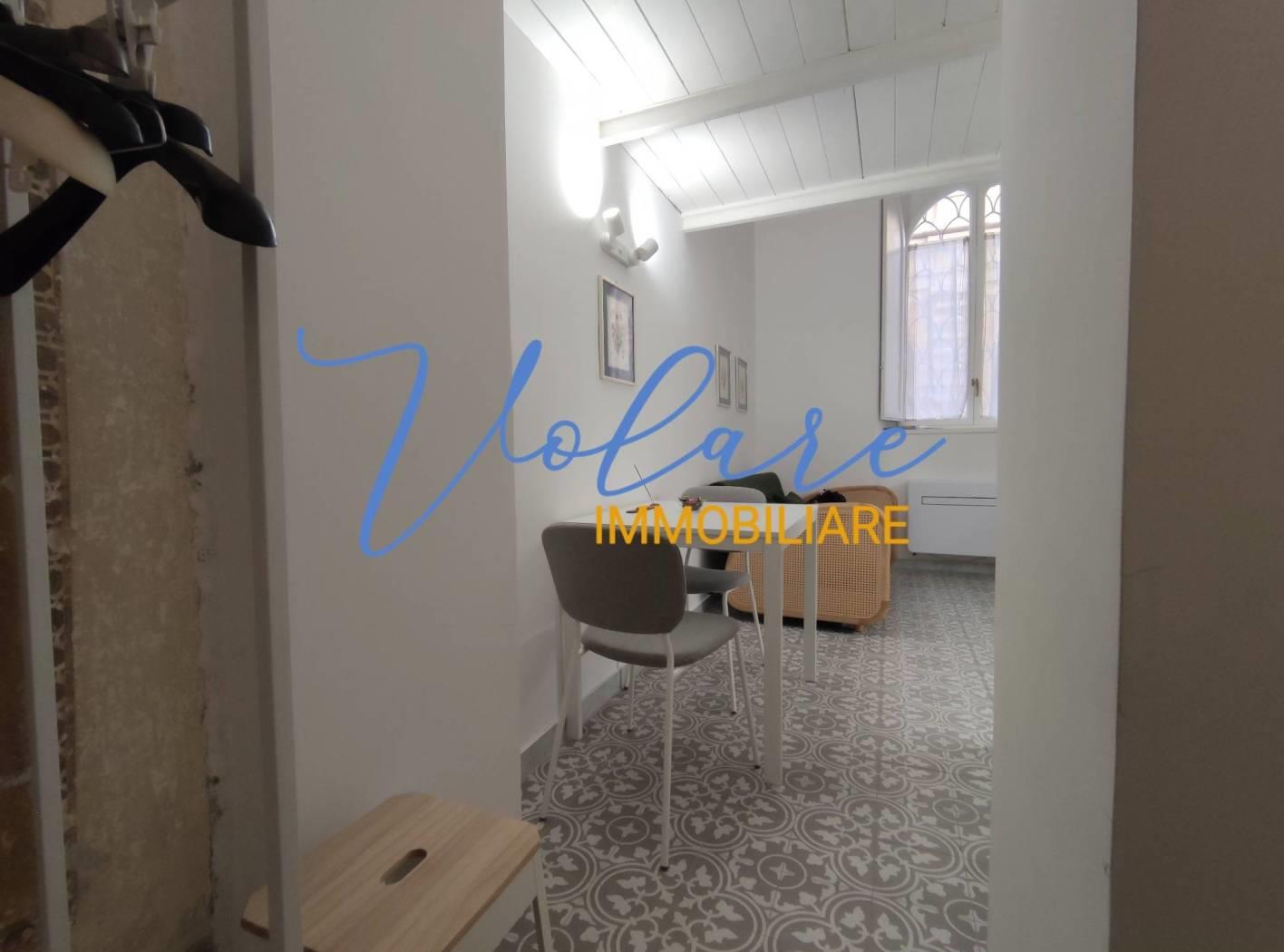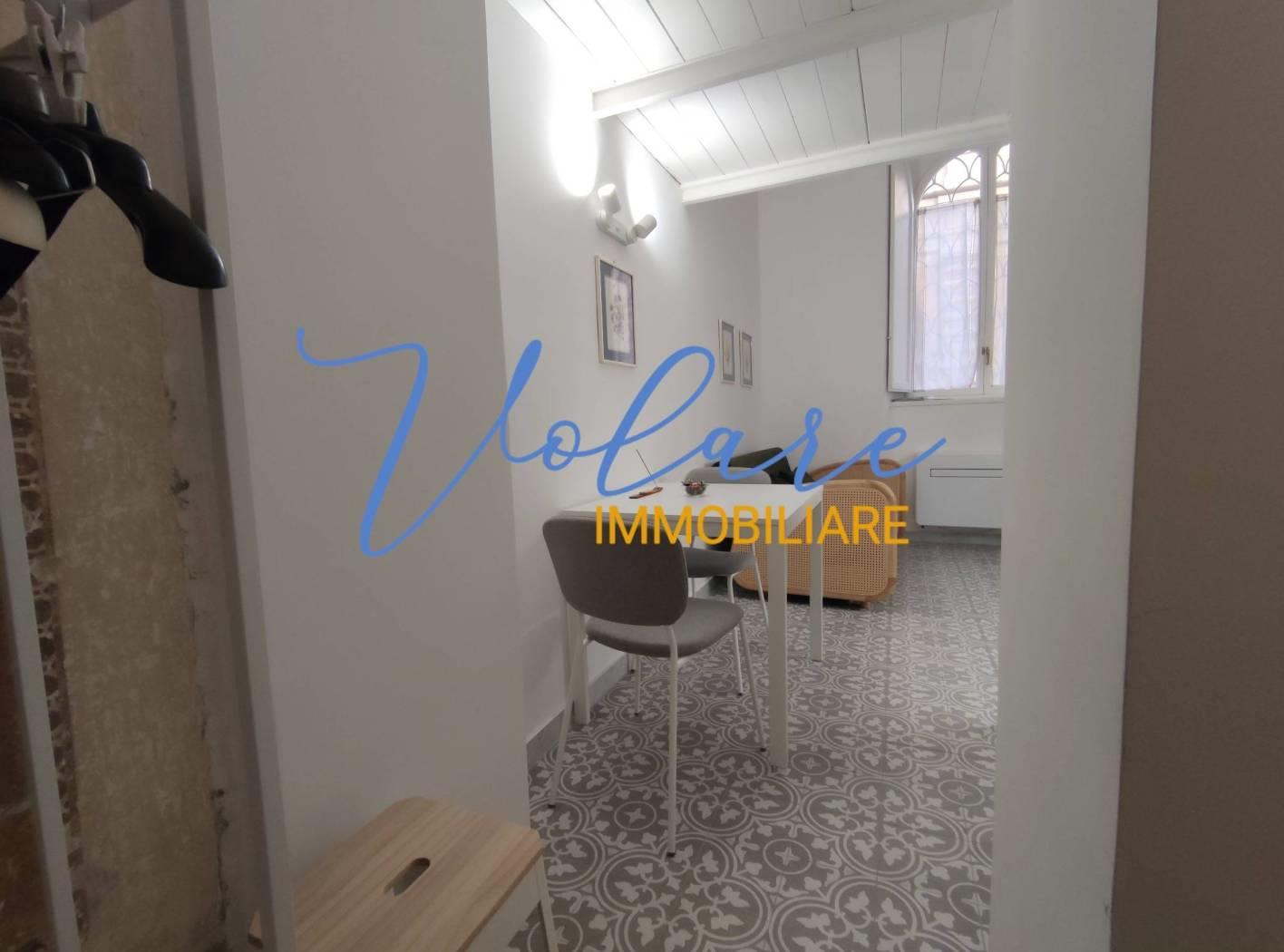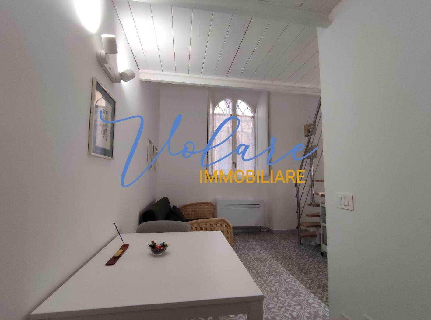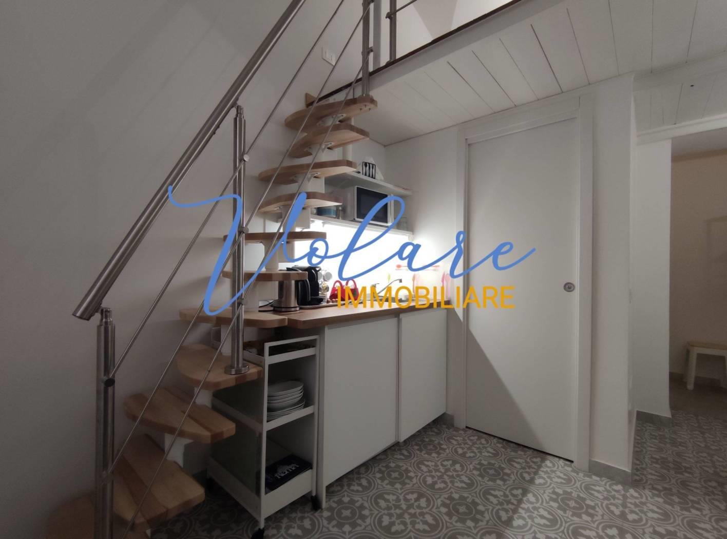 In posizione centralissima, tra Via XX Settembre e Via Nazionale, più precisamente in Via Modena, Volare Immobiliare propone in locazione un delizioso monolocale totalmente arredato. L'immobile è situato al piano rialzato di un signorile palazzo di epoca umbertina ed è accessibile dall'androne tramite una suggestiva porta con serratura elettronica oltre la quale pochi gradini portano ad un piccolo disimpegno con armadio a giorno. Il soggiorno propone tavolo, divano e un piccolo angolo cottura sottoscala. Il bagno con doccia fornito di areazione forzata completa il piano basso. Attraverso una moderna scala stile barca si accede al soppalco dove si trova un letto matrimoniale alla francese e l'armadio guardaroba.