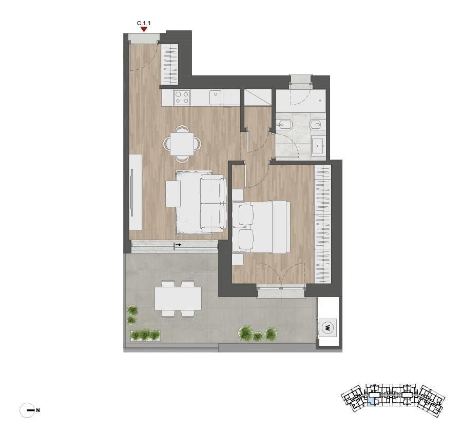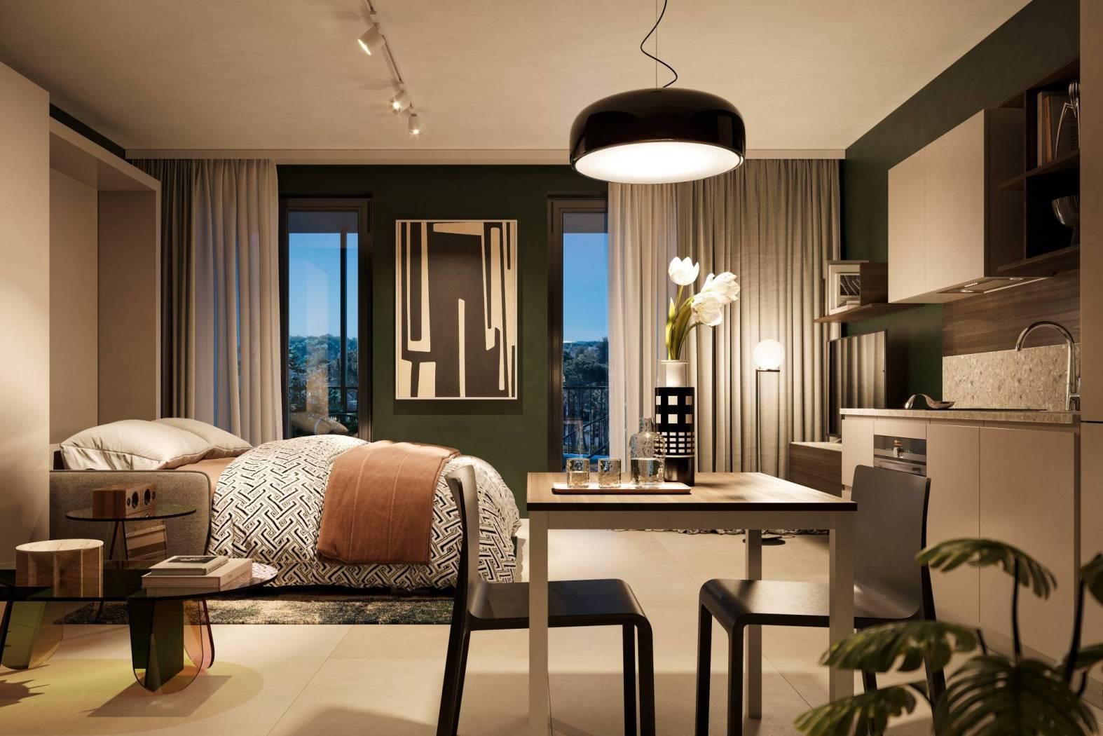 Dono dispone di una grande varietà di bilocali, con un layout contemporaneo e la possibilità di godere di spazi esterni che estendono la superficie abitabile. Tutti i bilocali sono dotati di una terrazza privata, luogo ideale per godere di comfort e relax all'aria aperta durante tutto l'anno.