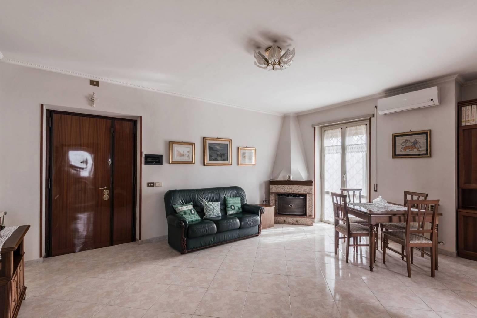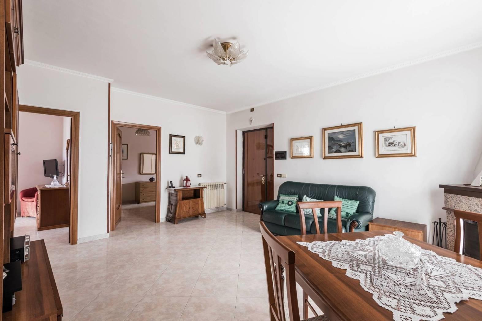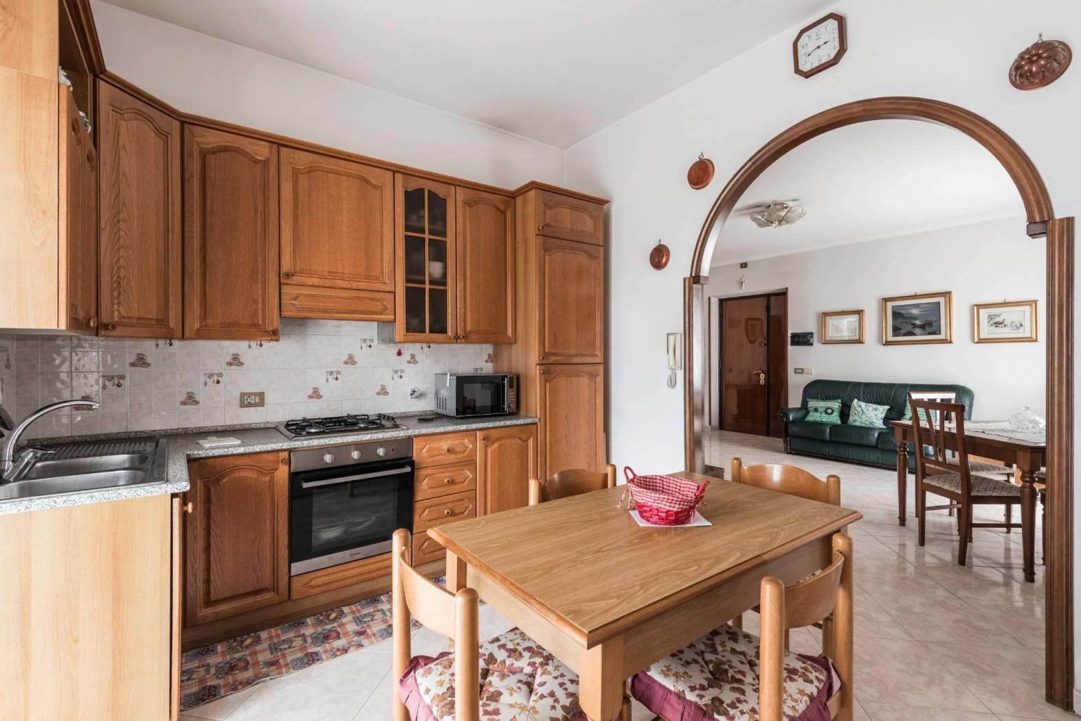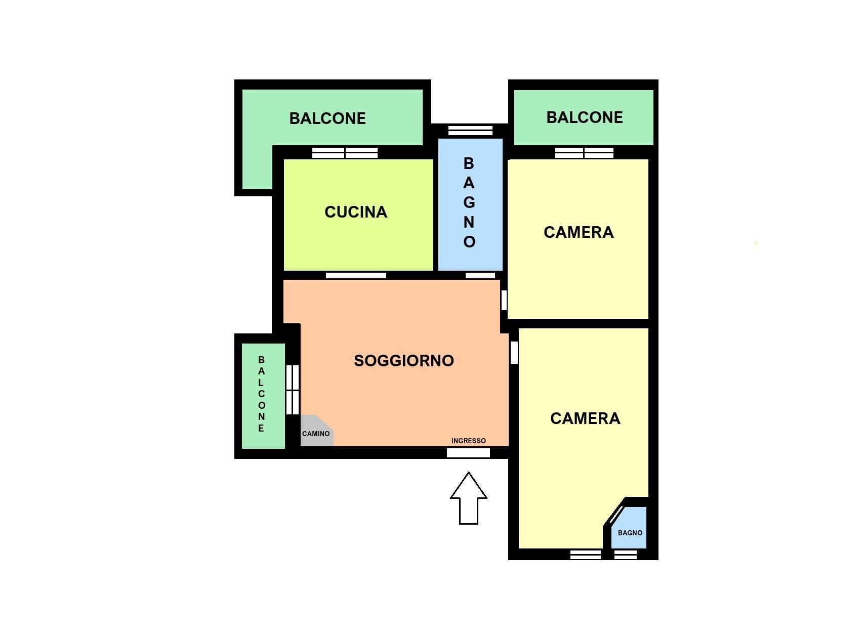 L’appartamento è composto di: ingresso, soggiorno con camino, cucina abitabile, due camere, doppi servizi e tre balconi.