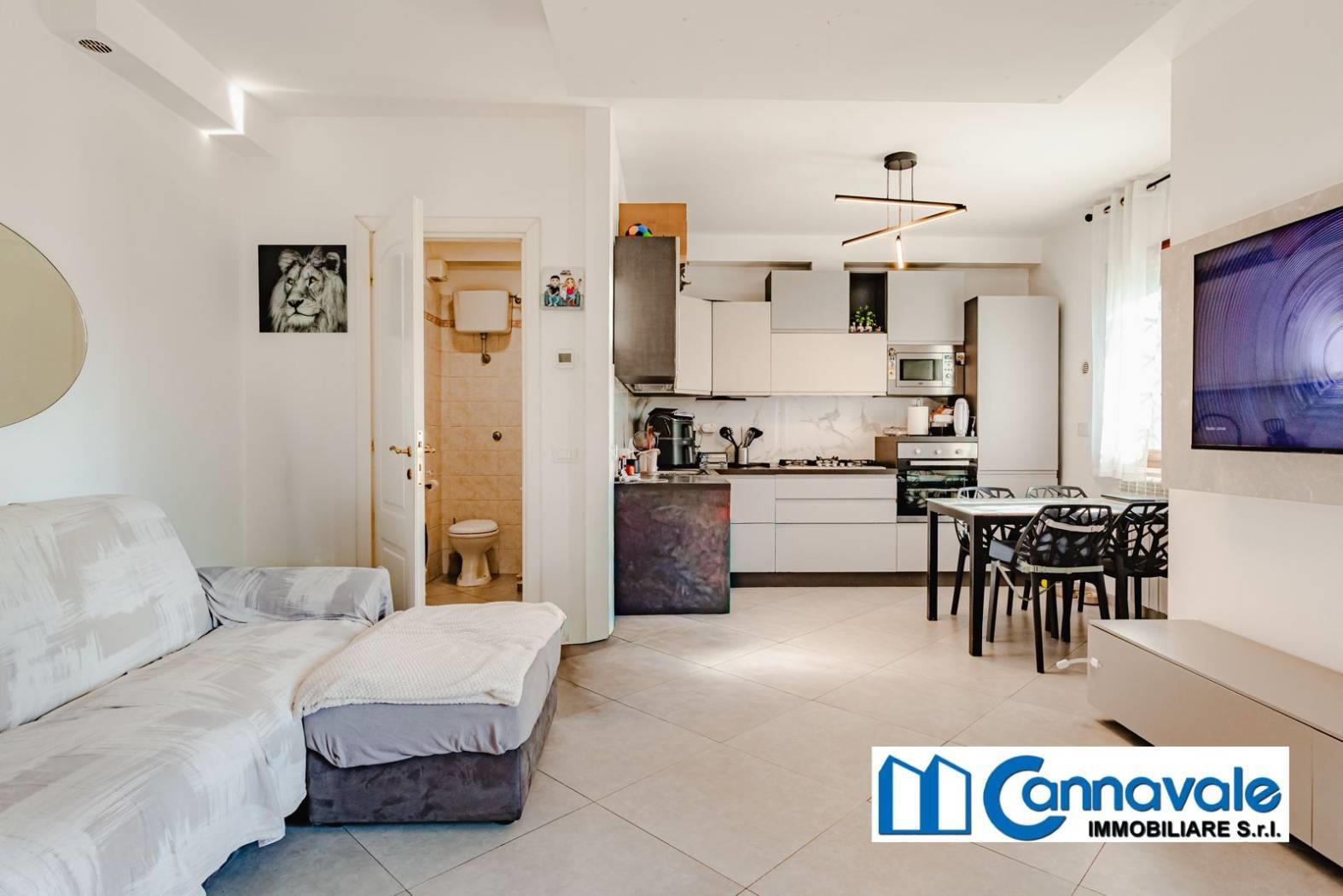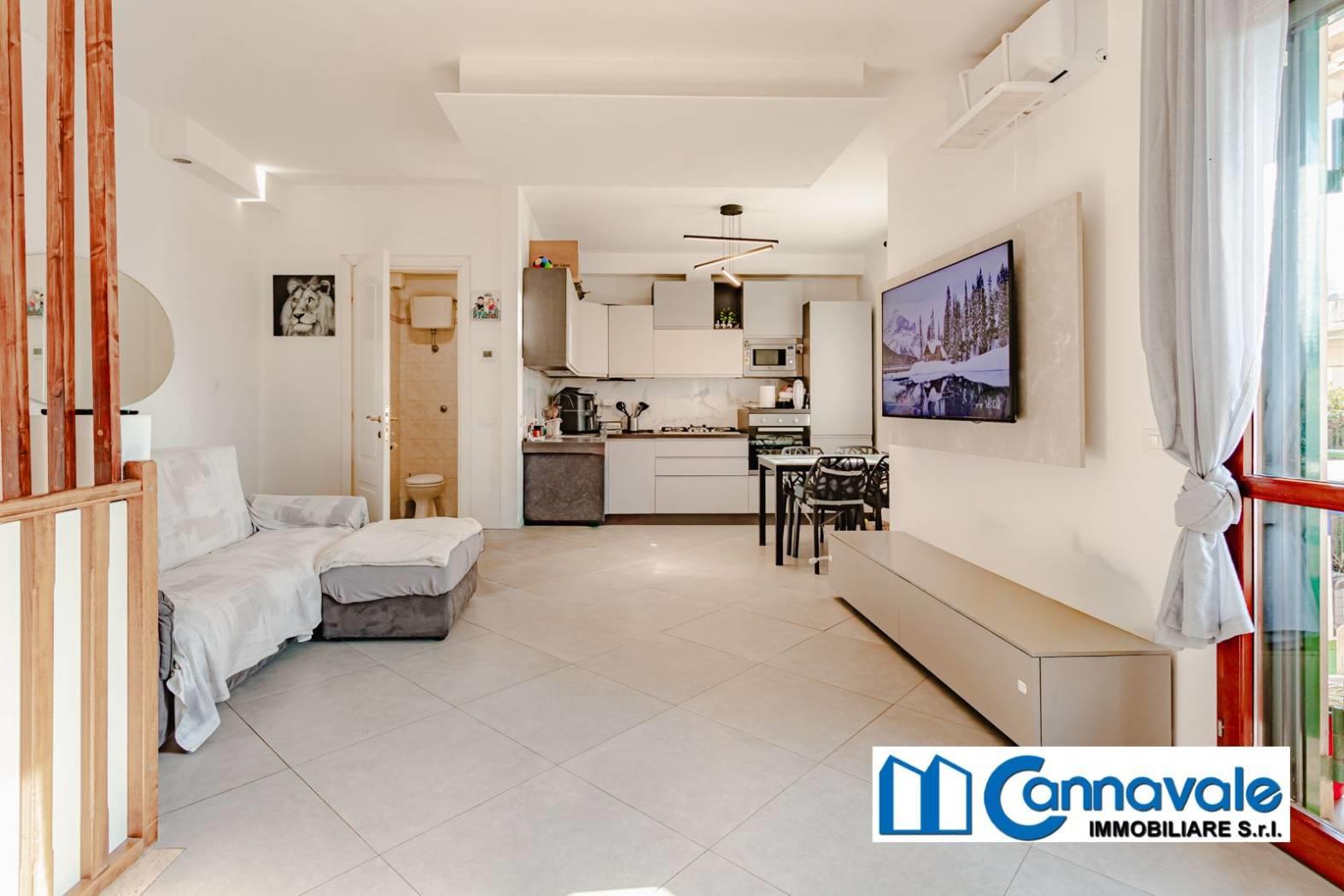 L'appartamento, integralmente e radicalmente ristrutturato nel 2022, vanta una distribuzione degli spazi intelligente e contemporanea: