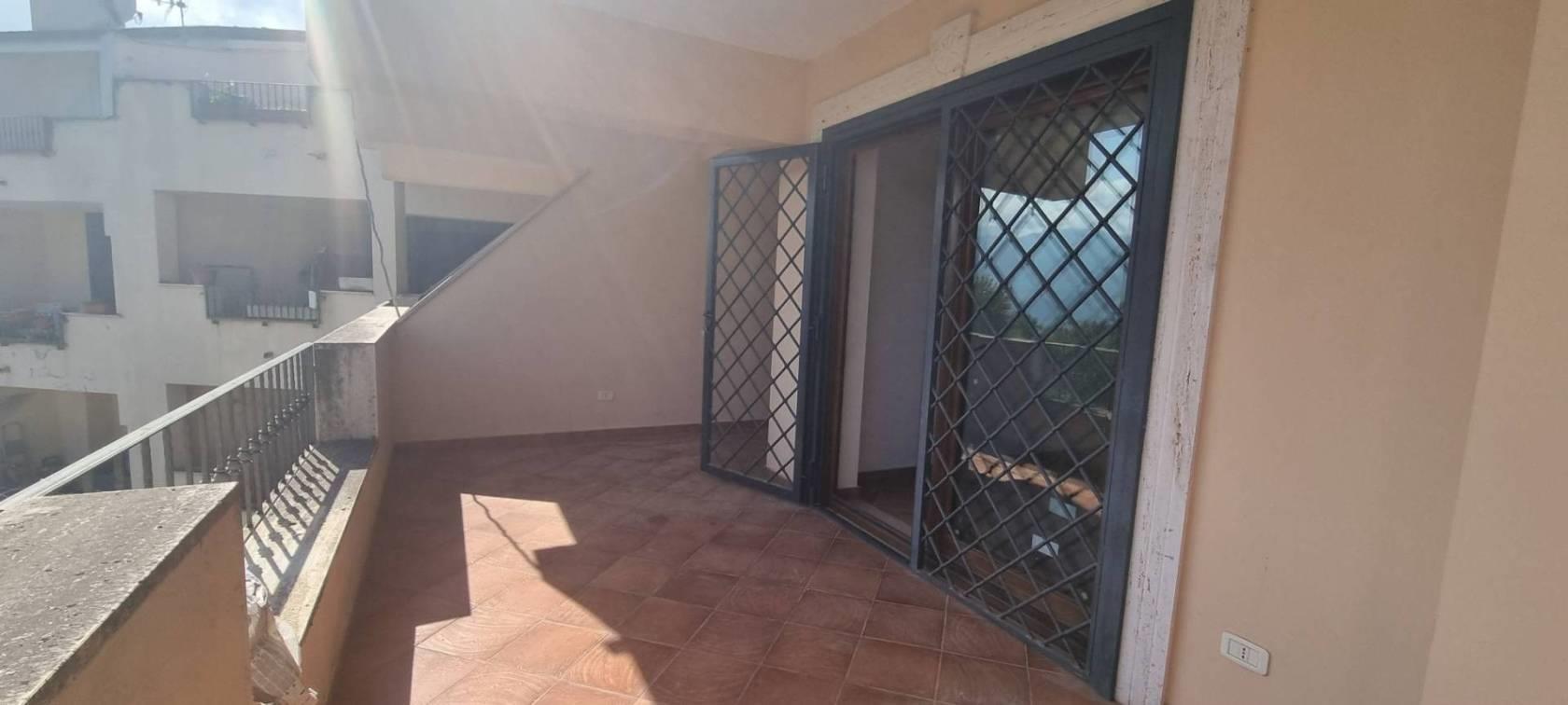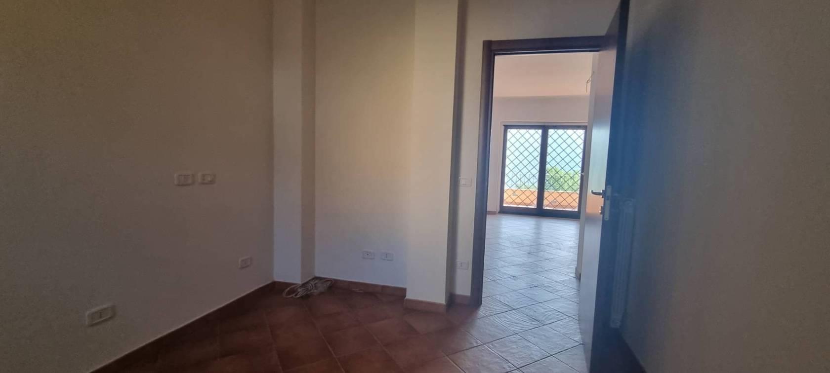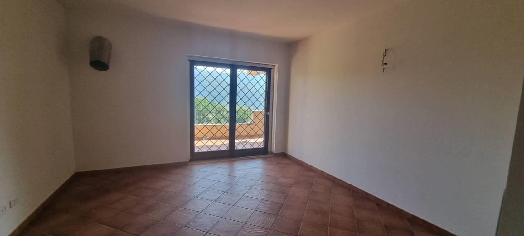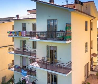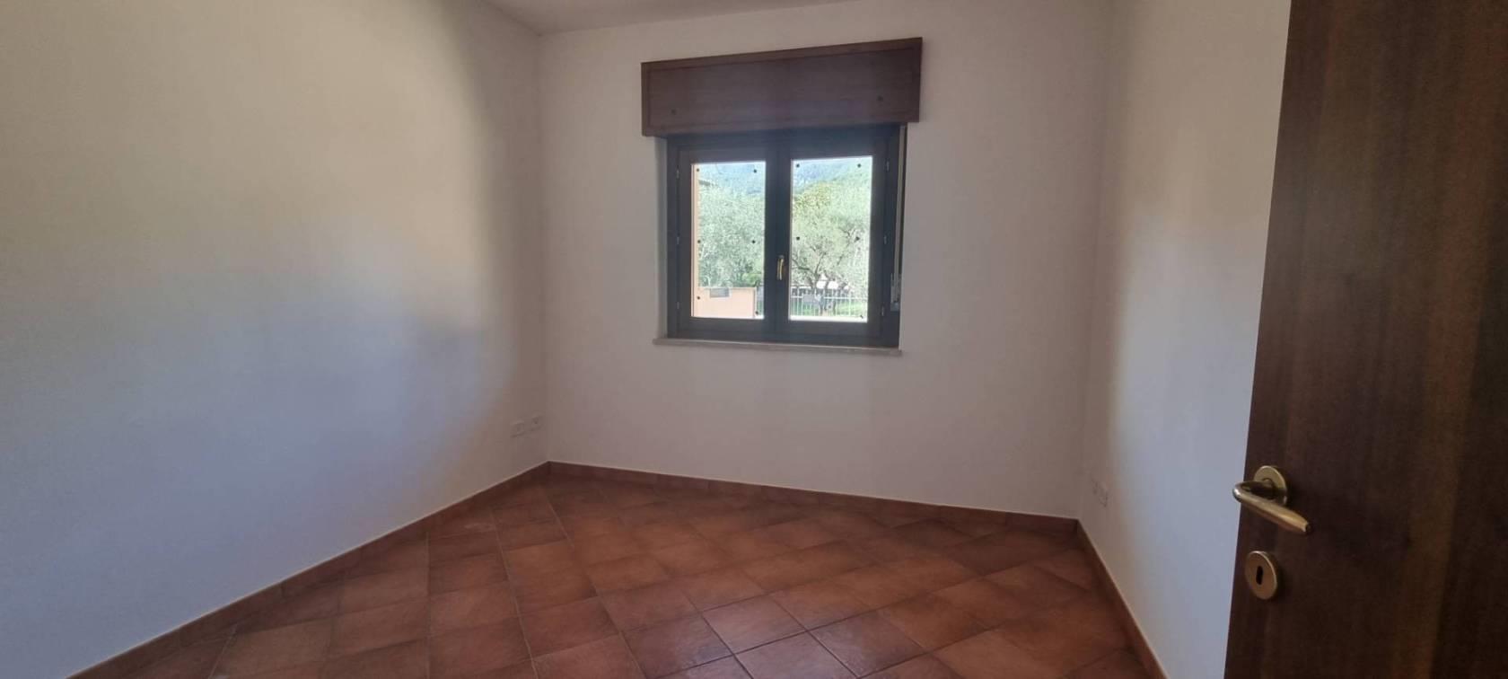 L'appartamento è diviso su due livelli tramite l' ingresso principale si arriva a un ampio e luminoso soggiorno, dotato di doppie finestre in PVC a doppio vetro che danno l'accesso a uno strepitoso terrazzo con vista mozzafiato sulla vallata , una camera da letto , cucina abitabile e servizio; tramite una comoda scala si scende al piano inferiore che è sbancato e troviamo un'ulteriore soggiorno con terrazzo con la medesima vista ed esposizione del primo ,un secondo bagno e due camere da letto, completa la proprietà un comodo giardino a livello.