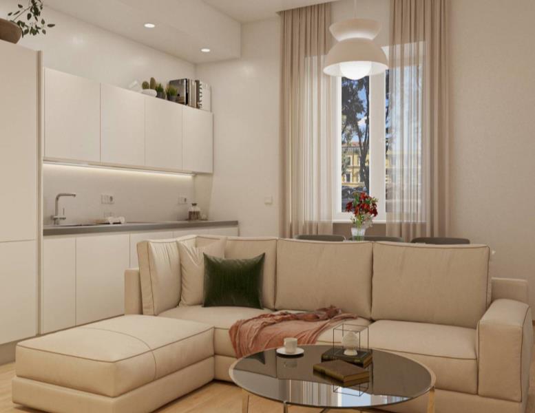 L'appartamento verrà consegnato completo di cucina attrezzata con elettrodomestici di ultima generazione, bagno arredato, infissi in PVC e doppio vetro, pavimenti in parquet e aria condizionata.