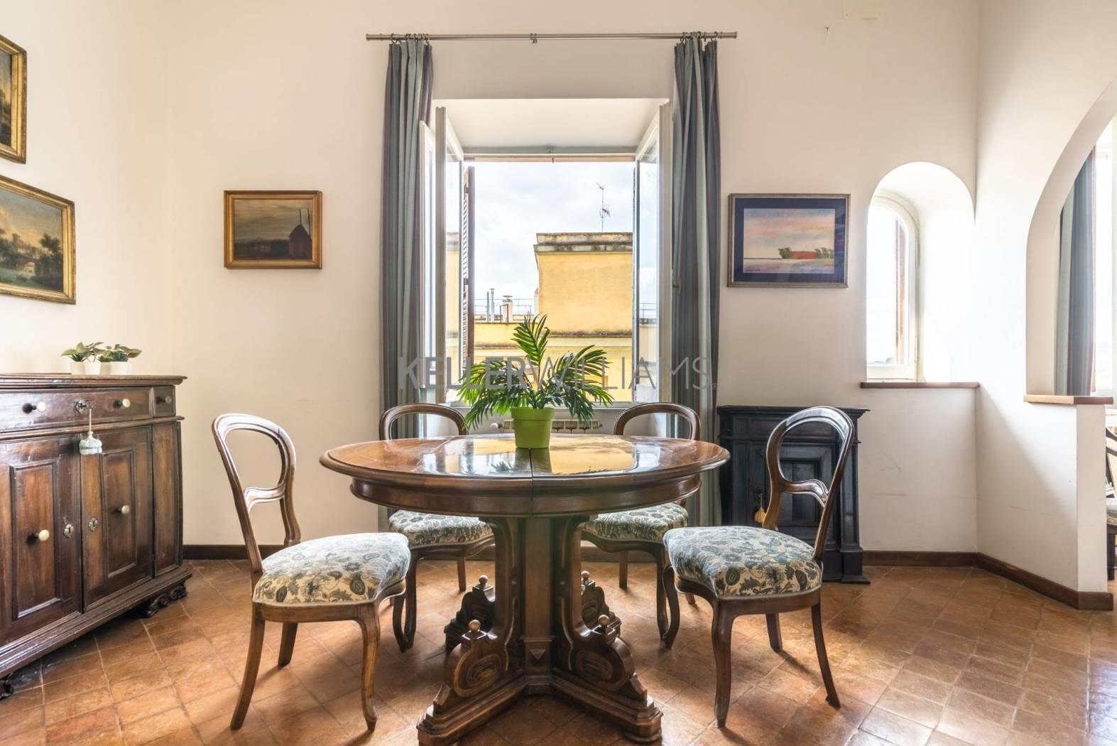 Presentato in esclusiva da Keller Williams Home, questo elegante e luminoso appartamento in affitto si trova al sesto piano di un edificio dei primi anni 20 di grande pregio storico, che porta la firma dell’architetto Marcello Piacentini.