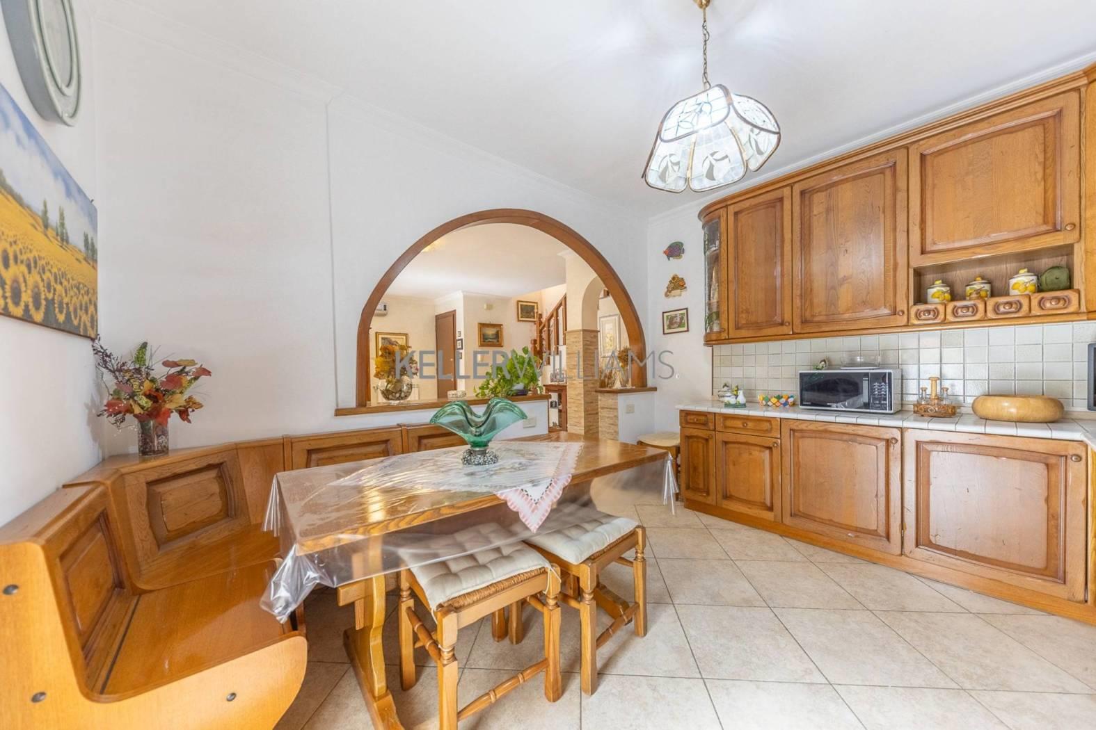 L’immobile è composto al piano terra da un accogliente ingresso che conduce ad un ampio salone, impreziosito da un elegante arco che introduce alla spaziosa cucina a vista, perfettamente integrata nell’ambiente e pensata per chi ama vivere la casa in modo pratico e contemporaneo, completa il piano un bagno finestrato. Dal salone, una scala conduce al piano superiore, dove si sviluppa la zona notte composta da una veranda luminosa con armadiature su misura, due camere da letto ben proporzionate ed un secondo bagno.