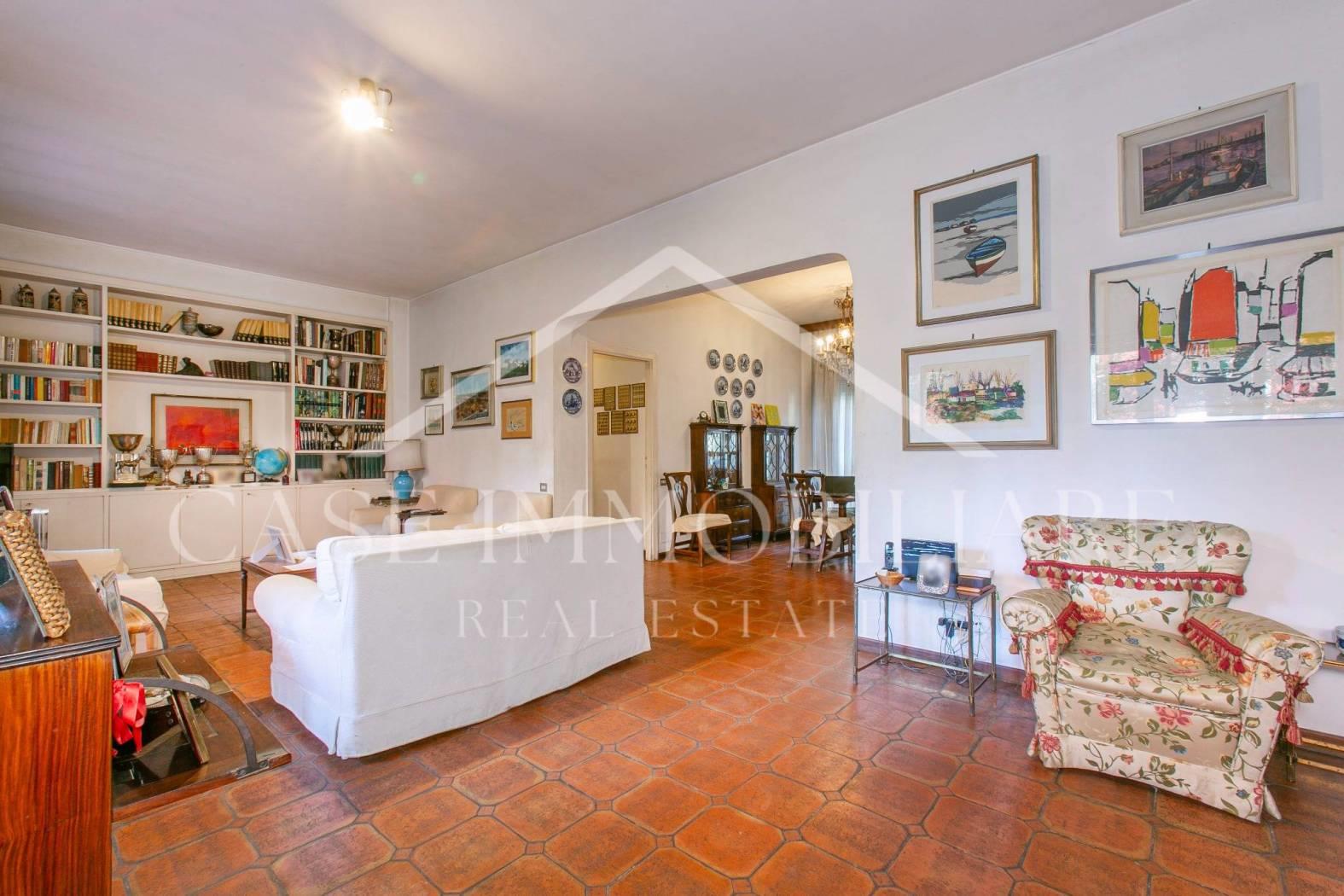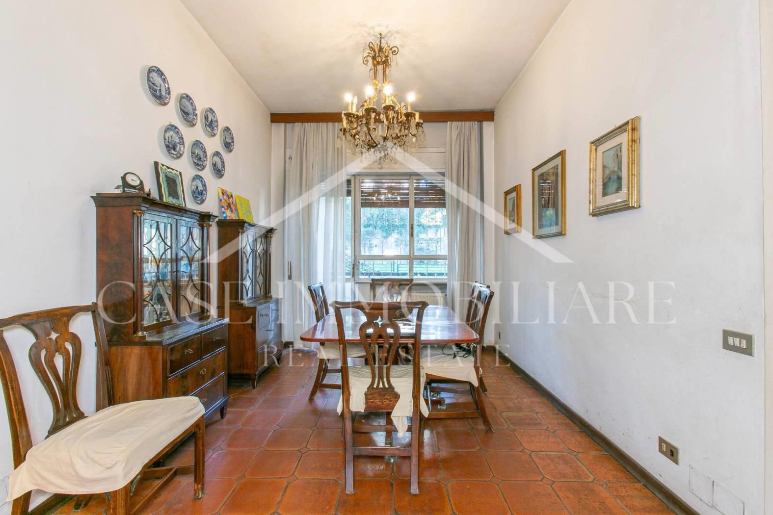 Dall’ingresso principale si accede a un ampio salone doppio, elegante e luminoso, impreziosito da grandi finestre che regalano una splendida luce naturale per tutta la giornata. La zona pranzo si integra armoniosamente con l’area relax, creando uno spazio conviviale e raffinato, ideale per ricevere ospiti o vivere momenti di comfort quotidiano. Da qui si accede all’esterno, in parte pavimentato e in parte a verde, perfetto per cene all’aperto, momenti di relax o per chi desidera uno spazio verde riservato in città.