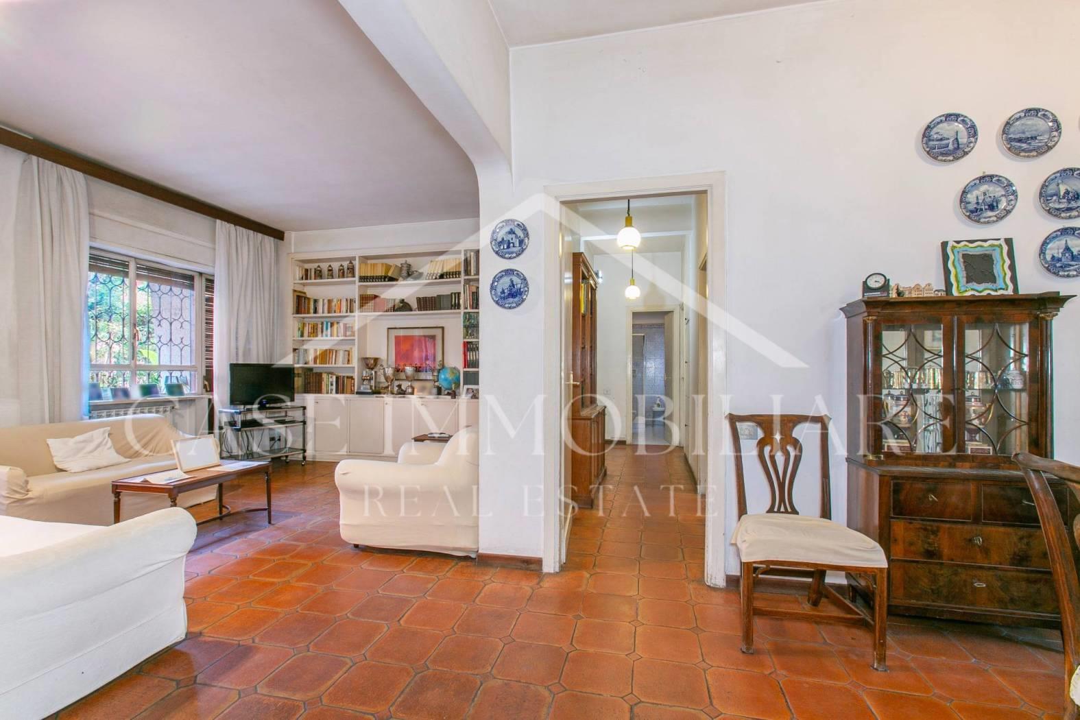 La CASE Immobiliare VENDE in esclusiva, nella prestigiosa zona di Vigna Clara, adiacente a Ponte Milvio, esattamente in via Ronciglione, un elegante e spazioso appartamento con grande giardino privato, unico nel suo genere.
