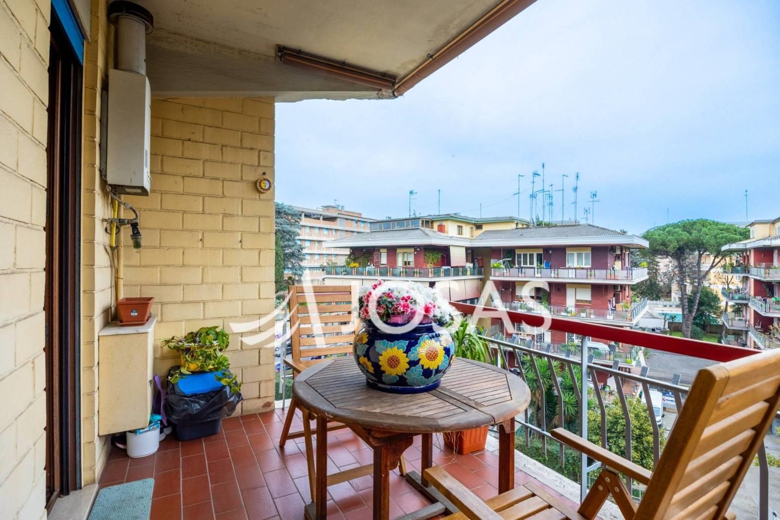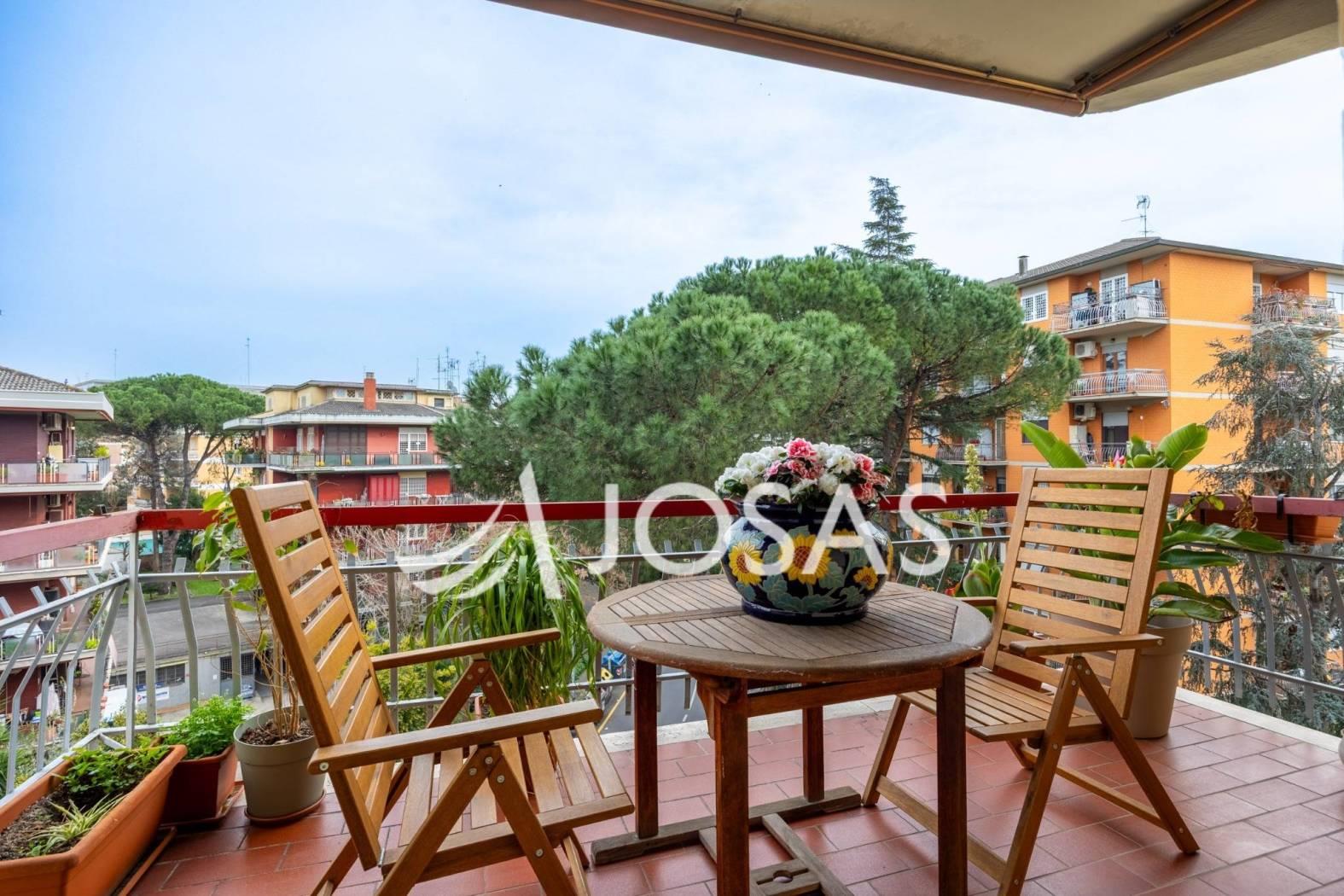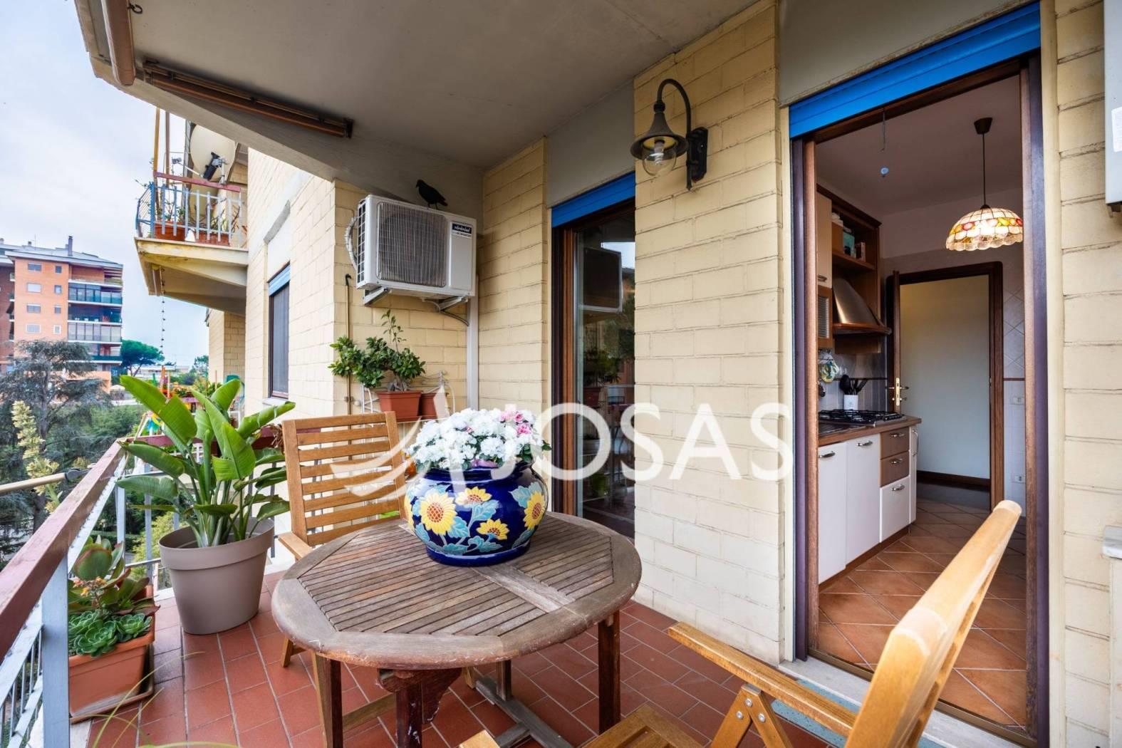 Un ampio ingresso conduce al salone con zona pranzo, affiancato da una cucina abitabile. Entrambi gli ambienti hanno accesso a un comodo terrazzino, ideale per cene con amici o per trascorrere piacevoli momenti all’aperto durante le calde serate romane.