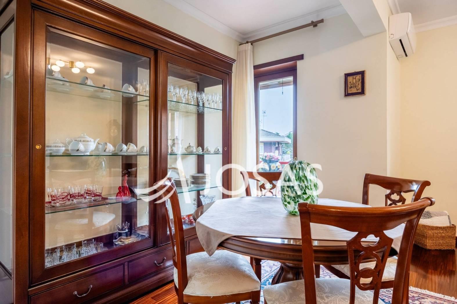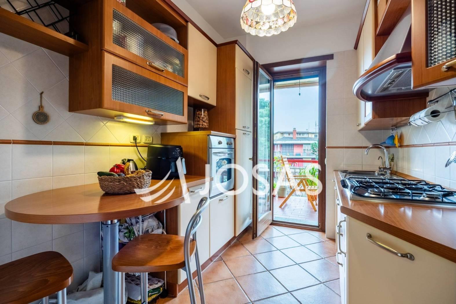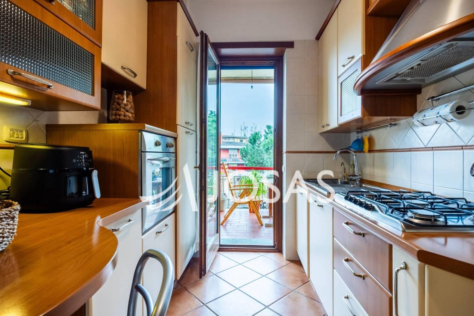 Un ampio ingresso conduce al salone con zona pranzo, affiancato da una cucina abitabile. Entrambi gli ambienti hanno accesso a un comodo terrazzino, ideale per cene con amici o per trascorrere piacevoli momenti all’aperto durante le calde serate romane.