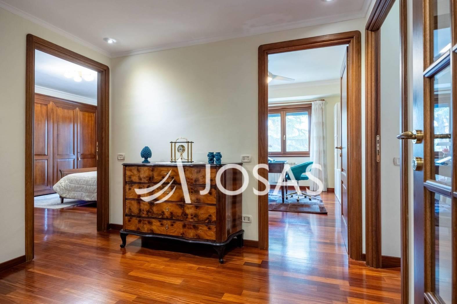 Un spazioso disimpegno introduce alla zona notte, composta da tre ampie camere da letto, di cui una con bagno en suite, un secondo bagno con doccia e un pratico ripostiglio.