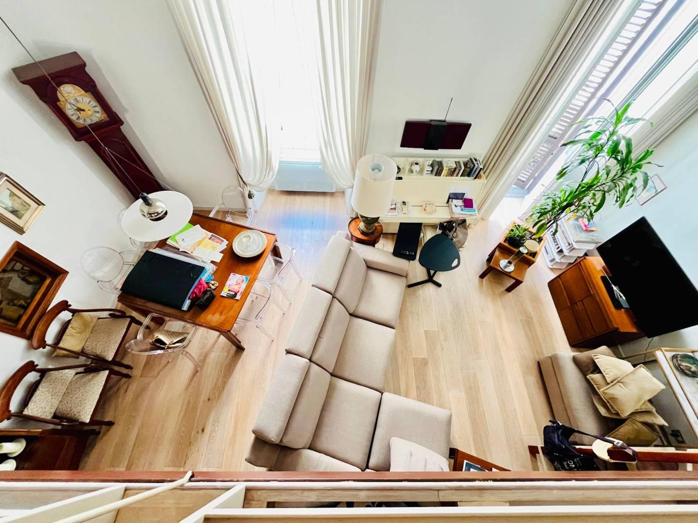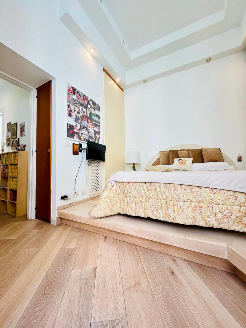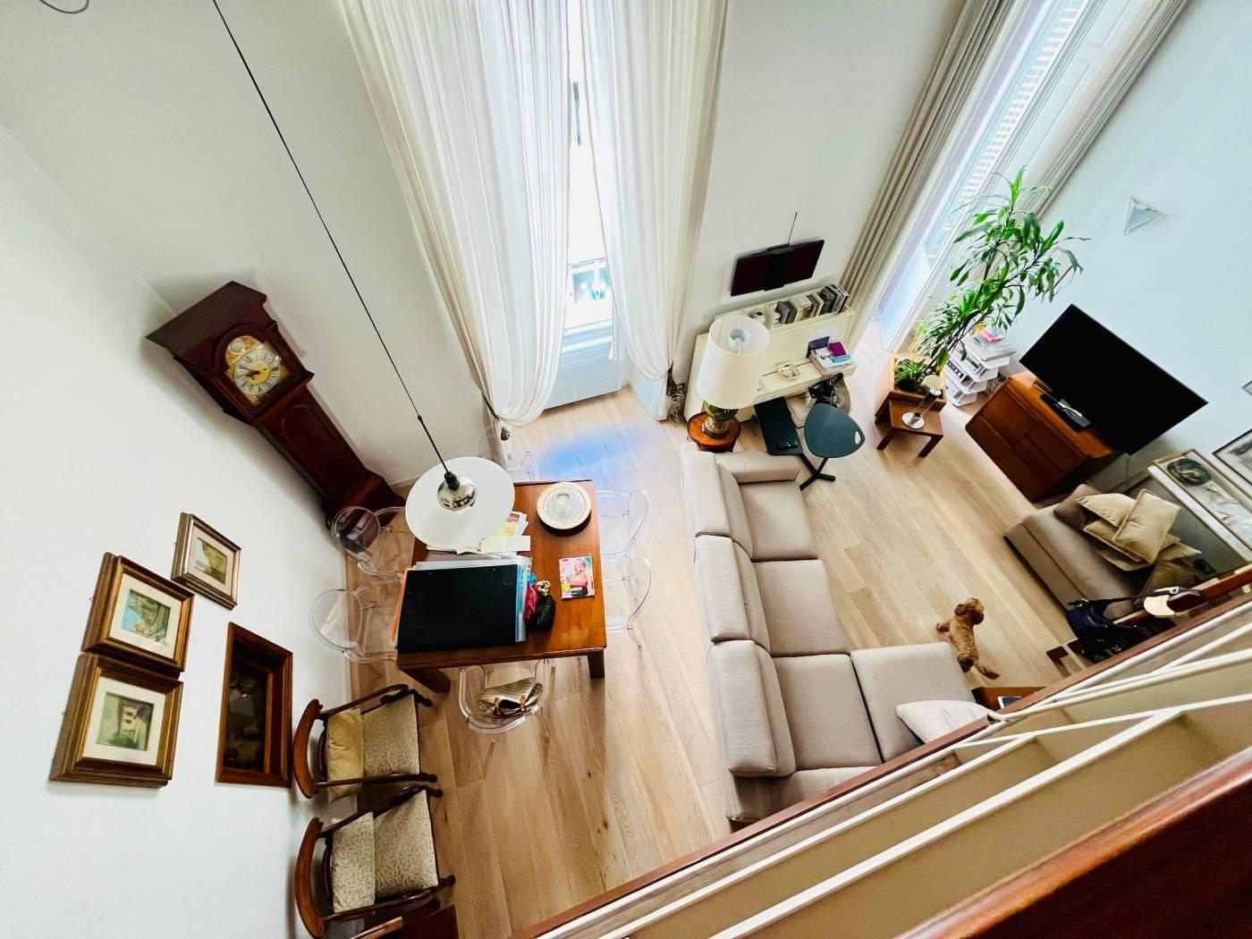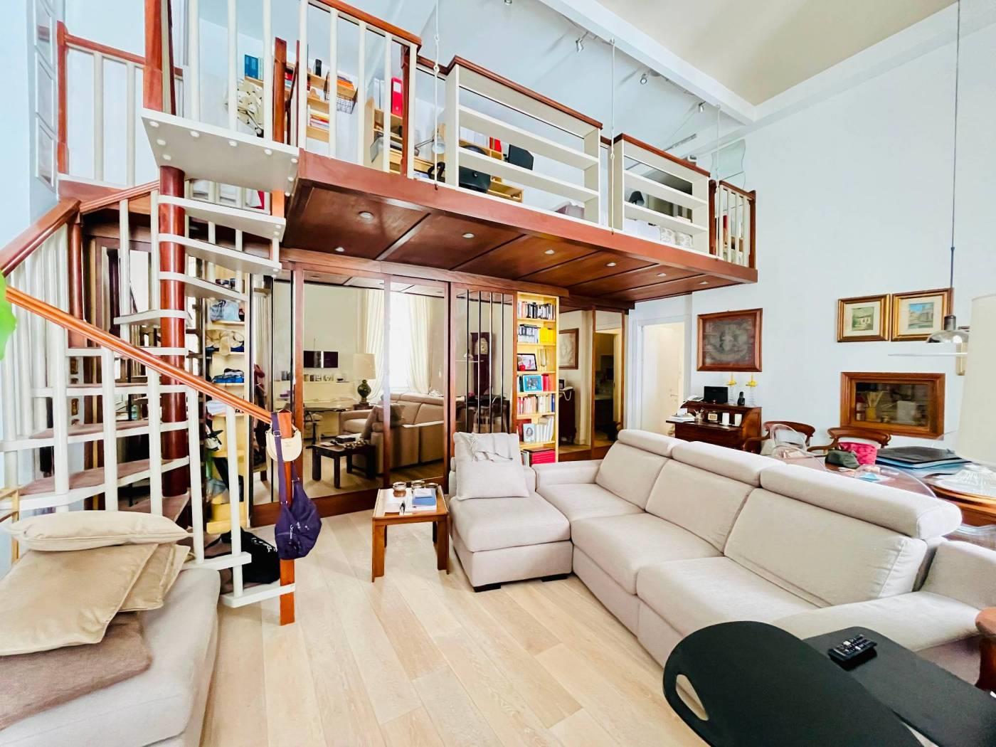 L’abitazione si apre su un ingresso che conduce a un ampio e luminoso salone, caratterizzato da soffitti alti e dettagli architettonici che ne esaltano il fascino. All'interno di questo spazio insiste un loft/studio che può essere utilizzato come terzo letto. Ideale per chi cerca spazi flessibili.