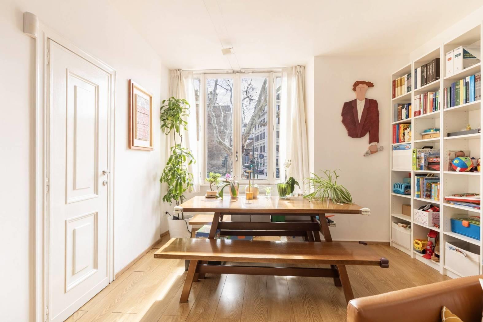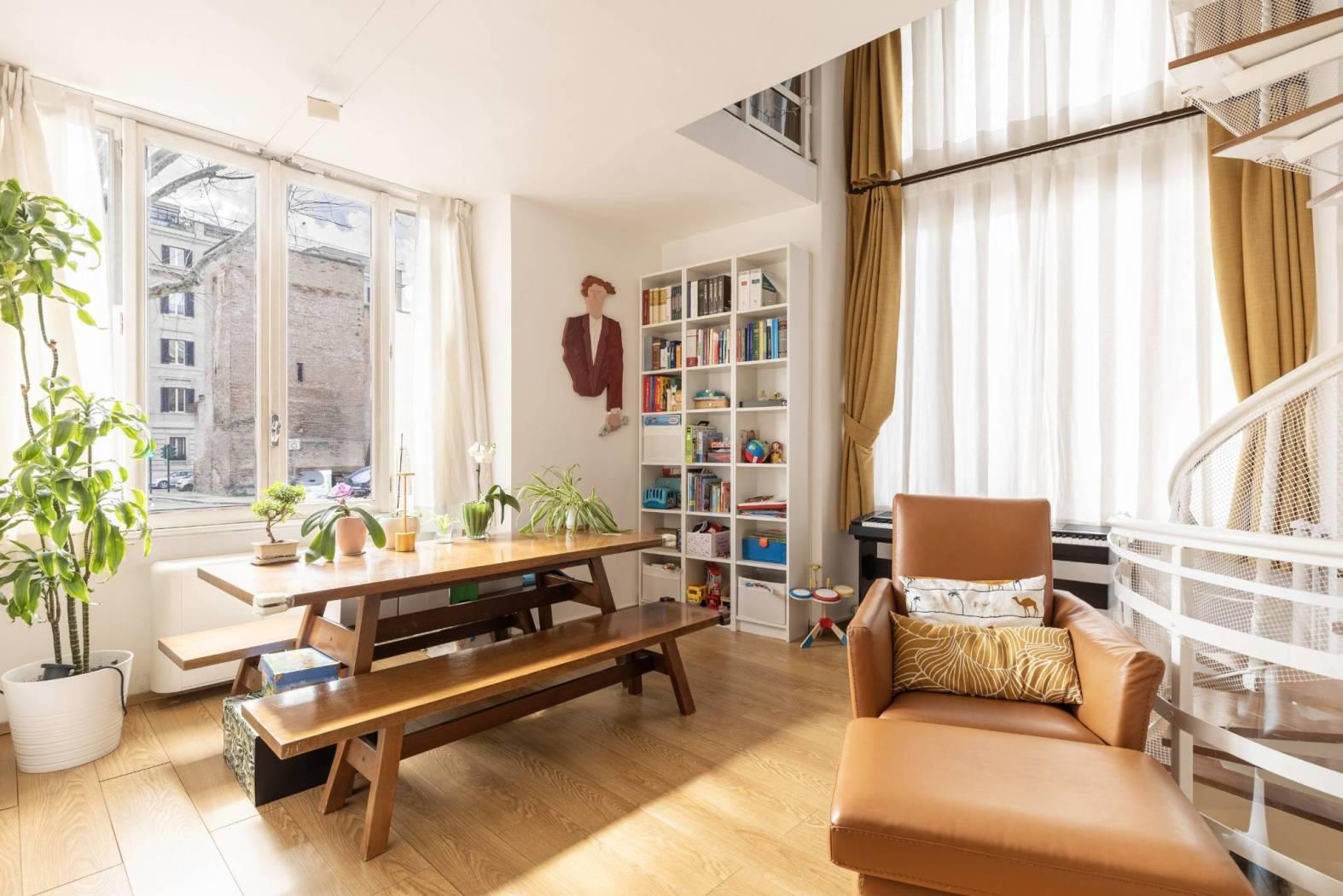 - Piano terra spazio elegantemente adibito a sala pranzo/soggiorno con due ampie finestre che affacciano esternamente su Corso D'Italia e Via Po.