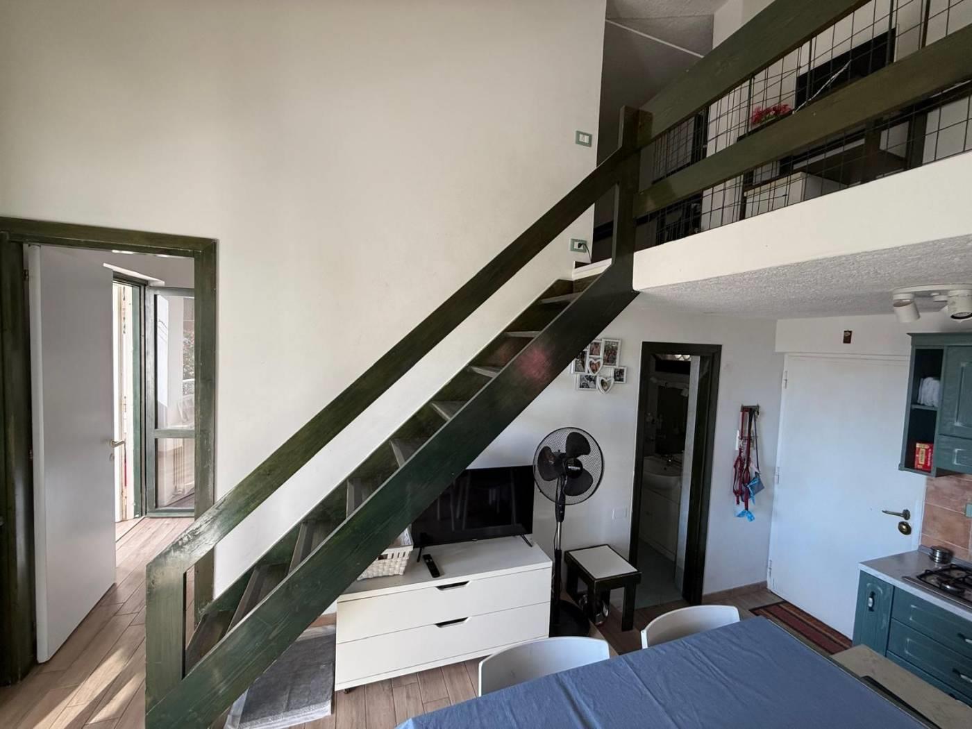 Al primo piano ci accoglie un ampio e luminoso salone con angolo cottura, perfettamente integrato nella zona giorno, e una camera matrimoniale. Entrambi gli ambienti sono serviti da una porta finestra che conduce a un comodo balcone, ideale per momenti di relax all’aperto.