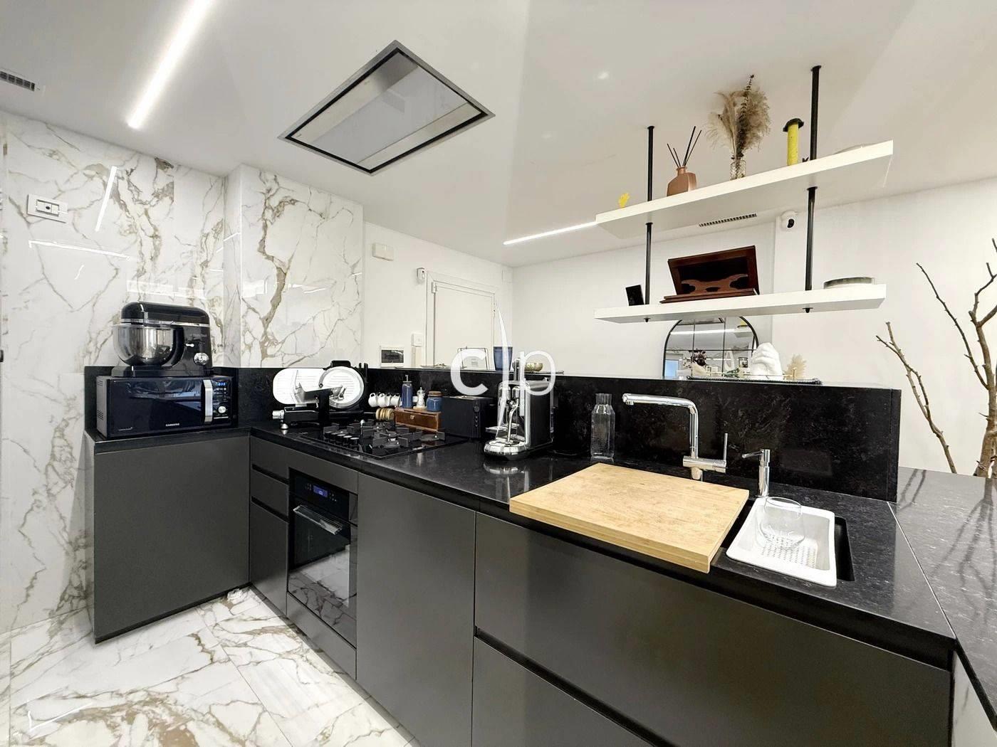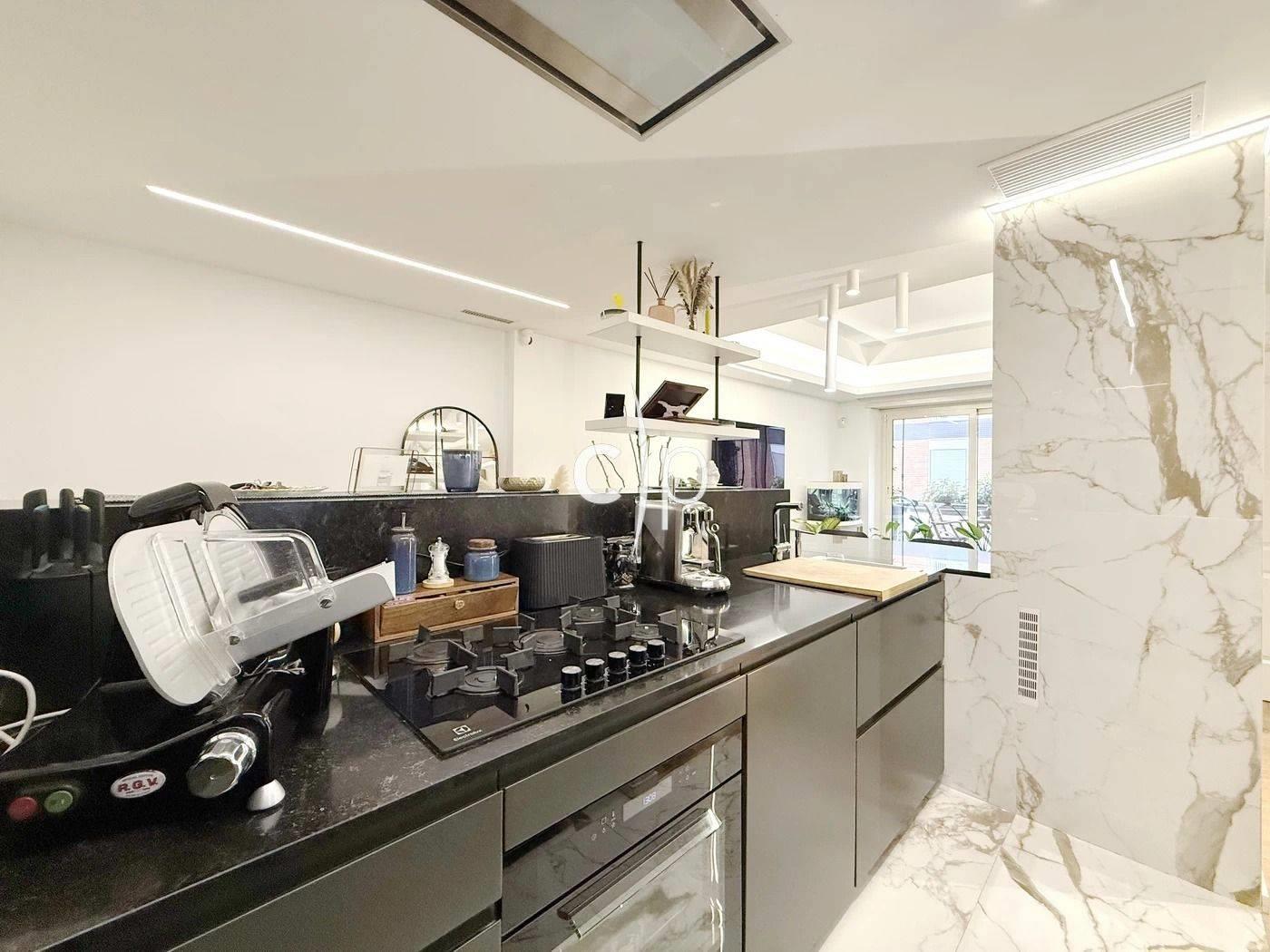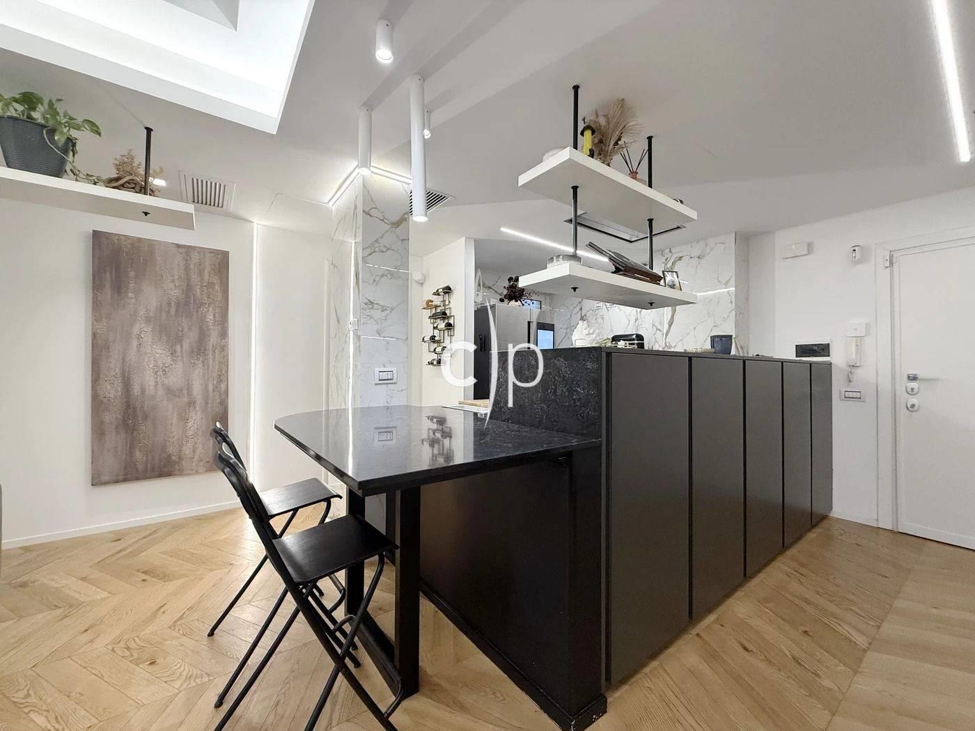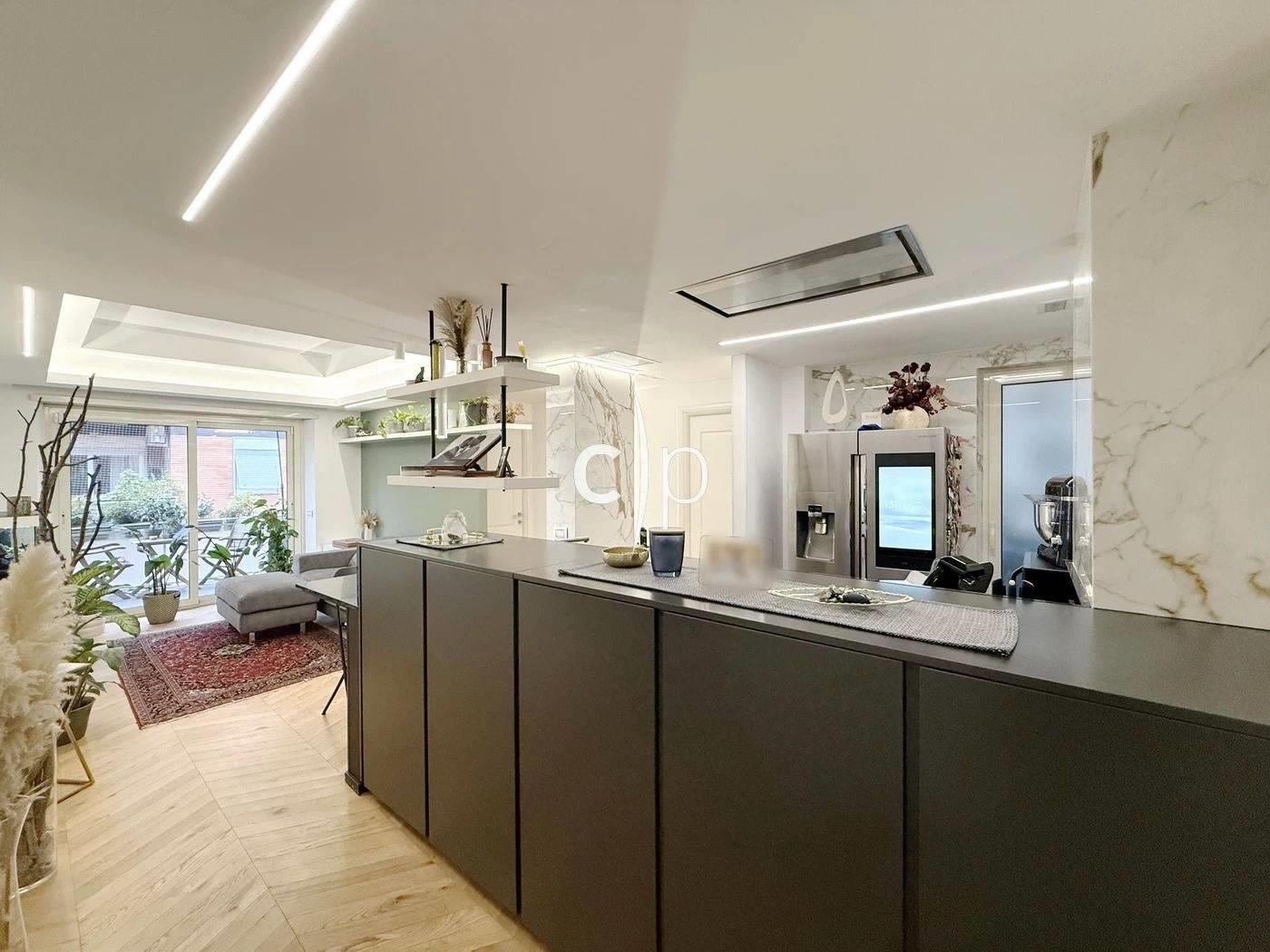 La ristrutturazione, curata nei minimi dettagli, valorizza materiali di pregio e soluzioni tecnologiche: