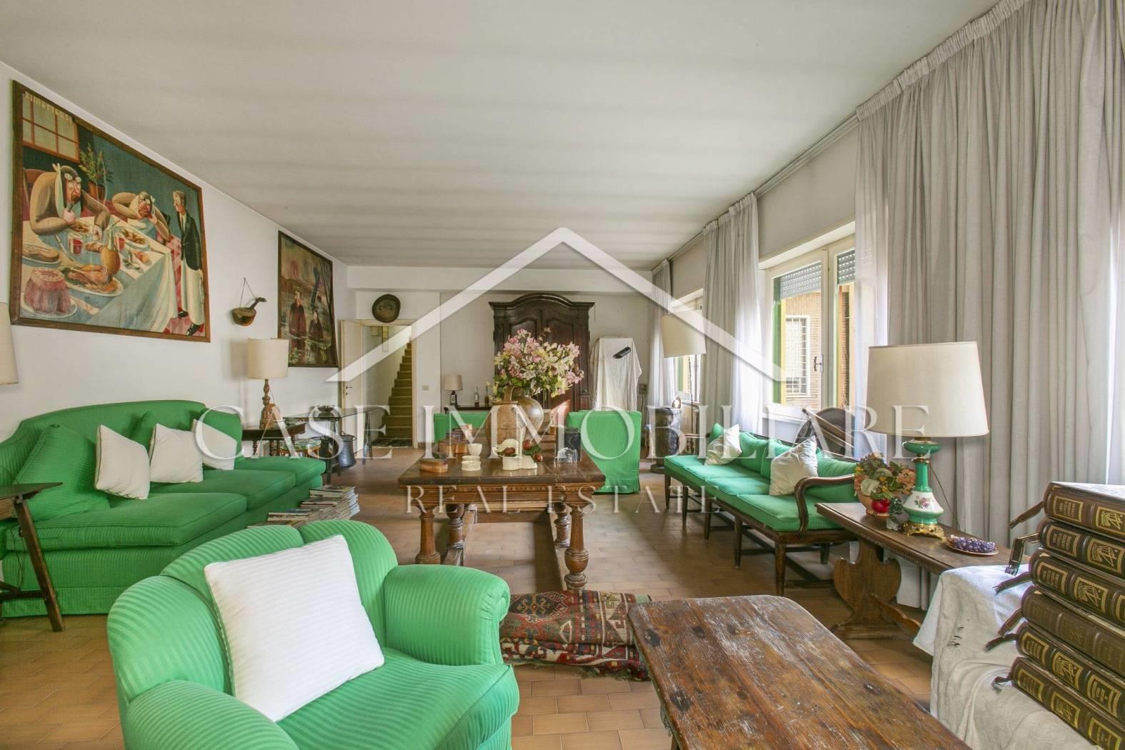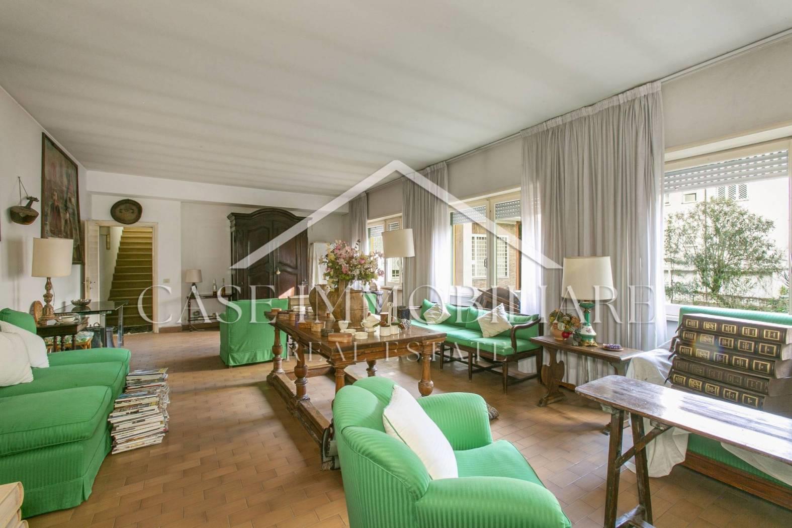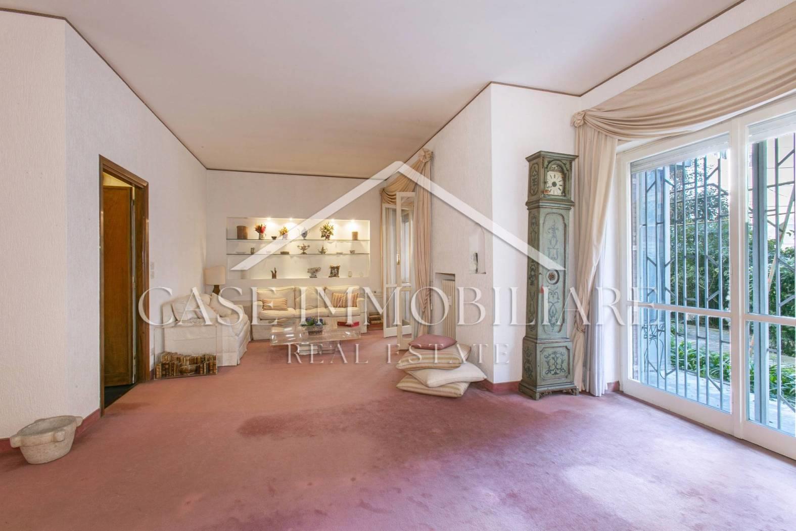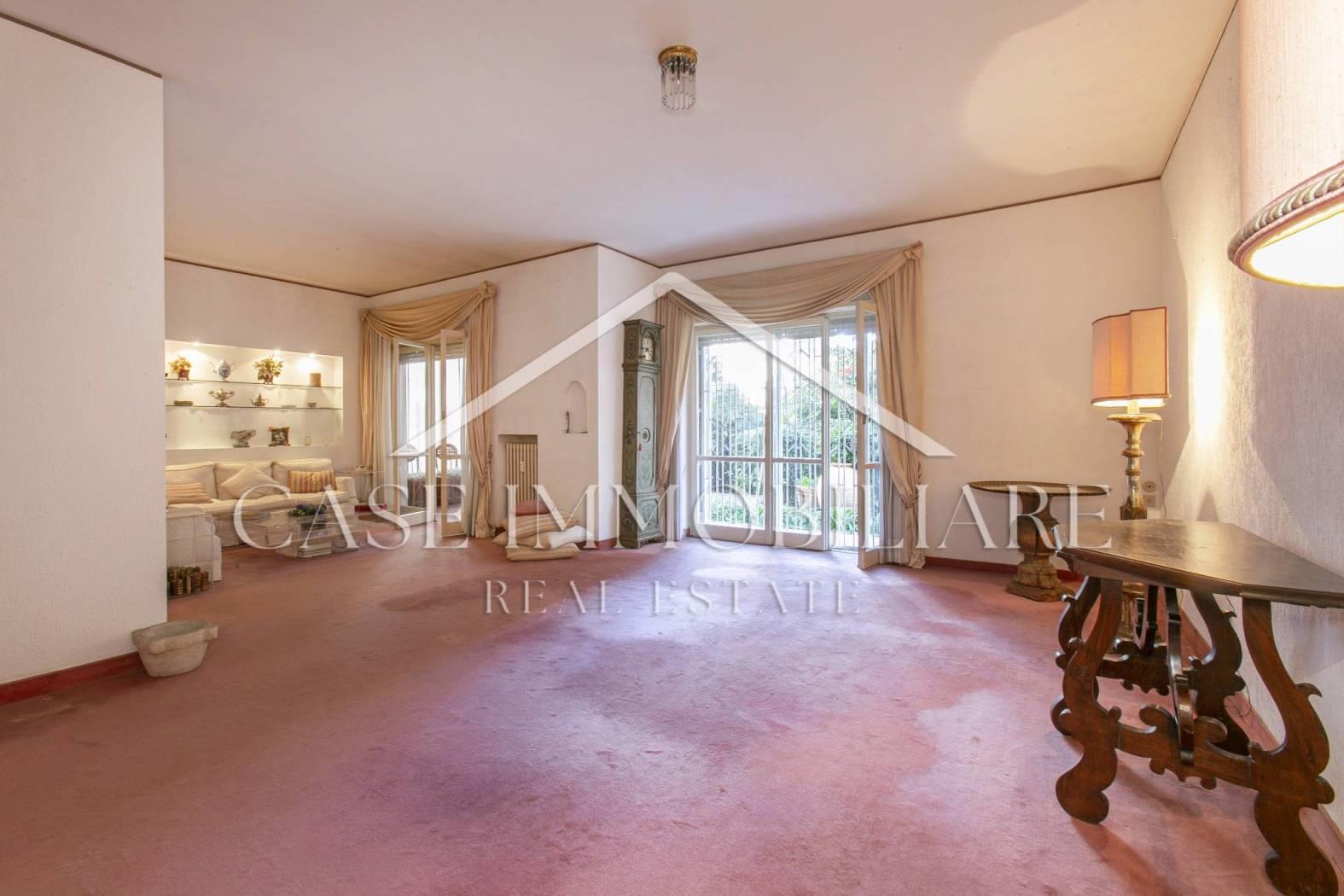 L’immobile si presenta da ristrutturare, ma offre ampie possibilità di trasformazione ed eventualmente divisione dello stesso in due unità abitative; gli spazi interni sono luminosi e ben distribuiti, si prestano a creare una casa su misura, perfetta per soddisfare ogni esigenza di stile e funzionalità. Ad oggi è così diviso: ampio ingresso , salone doppio di rappresentanza contornato da vetrate con uscita sul giardino, sala da pranzo, una camera padronale, ulteriori camere e doppi servizi; il piano inferiore collegato da scala interna offre ulteriore salone doppio che può essere adibito a sala cinema, camere e bagno. Completa la proprietà un Box auto di 26 mq, ed una cantina.