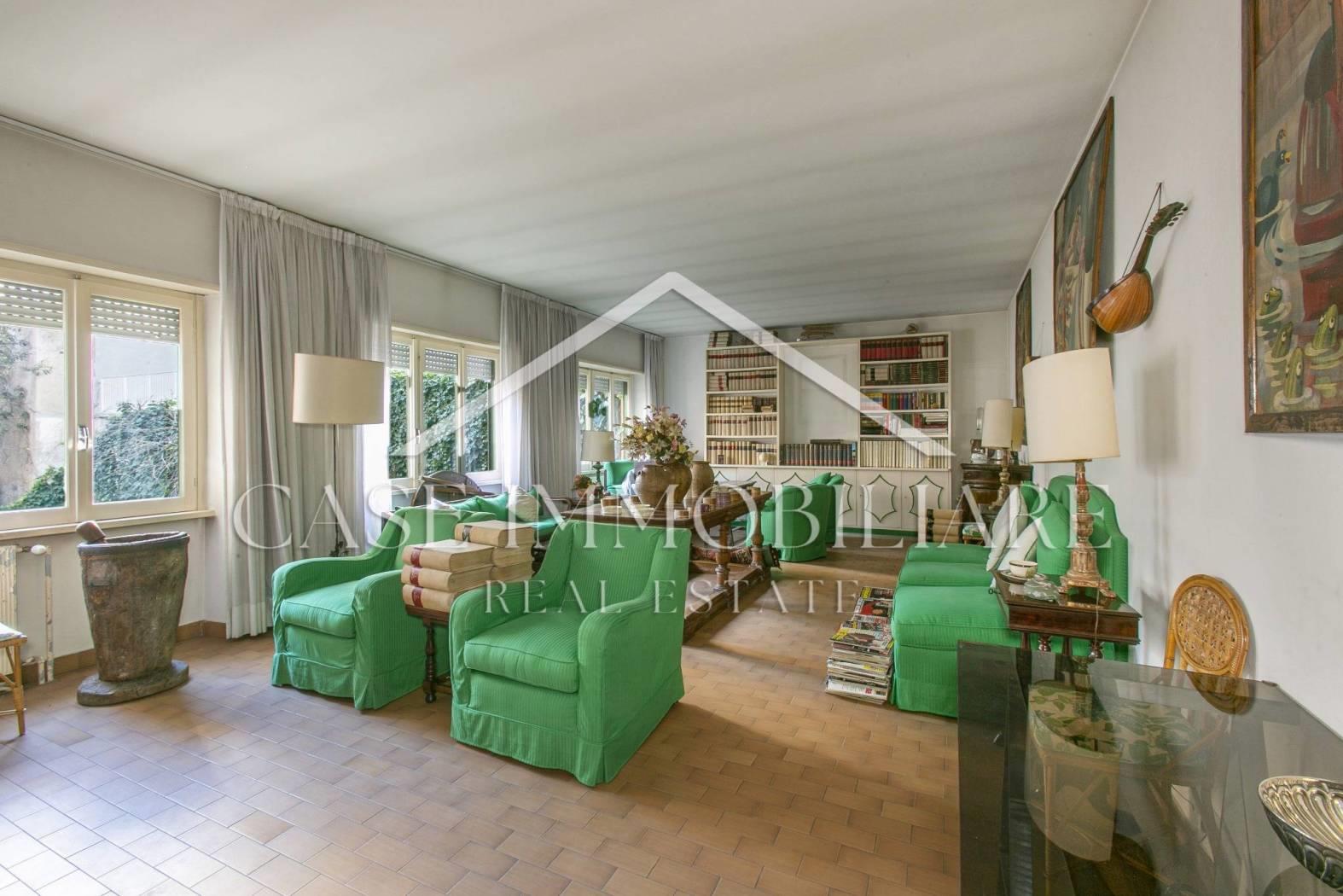 La CaSe Immobiliare propone in vendita , nella prestigiosa zona di Vigna Clara esattamente in via del Podismo, una strada privata con sbarra di accesso, elegante e spazioso appartamento unico nel suo genere con grande giardino privato. Questo appartamento di 230 mq disposto su due livelli, è accompagnato da un magnifico giardino privato di 310 mq, una vera rarità nella zona, ideale per momenti di relax o per godersi il verde in piena privacy.