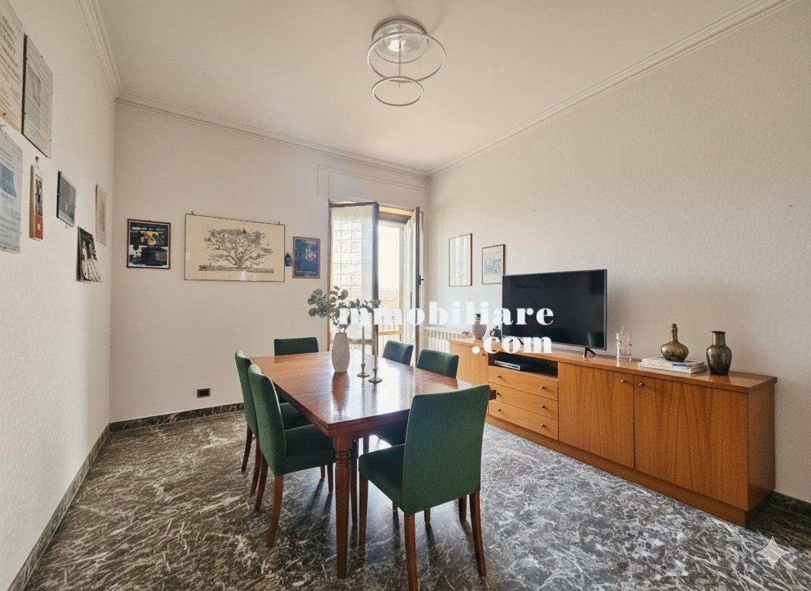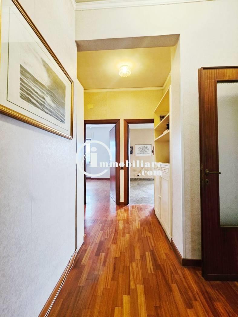 Gli ambienti sono così distribuiti: ampio ingresso, soggiorno, sala da pranzo, disimpegno, armadi a muro, cucina semi-abitabile, 2 camere da letto e servizio.