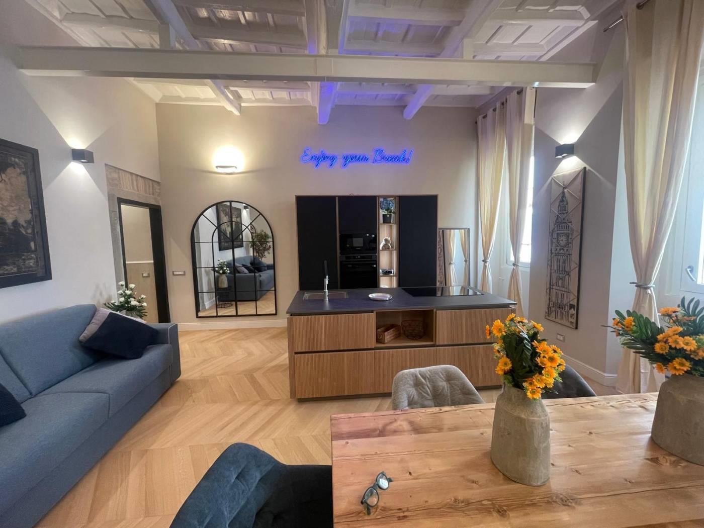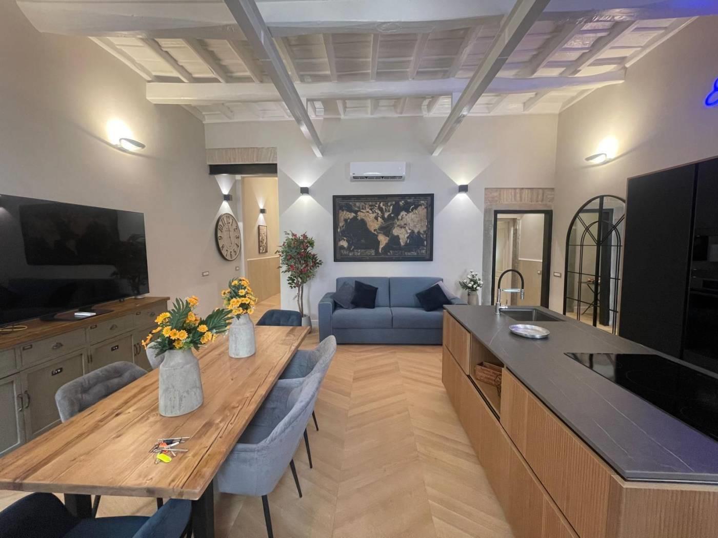 L'appartamento è stato oggetto di una completa ristrutturazione nel 2024, con soffitti alti quasi 4 metri ornati con travi in legno splendidamente restaurate e nuovo pavimento in parquet di rovere naturale, emana particolare charme. Ogni materiale usato per la ristrutturazione è di particolare pregio. Si valutano affitti sia a privati che a società.