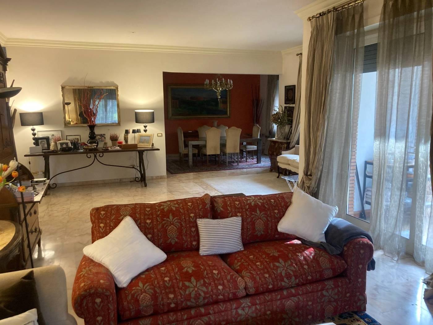 Nel primo tratto di Via Cortina d'Ampezzo (Lato Cassia), al terzo piano di un esclusivo e signorile condominio, suggestivo luminoso appartamento, con piacevoli affacci nel verde, ristrutturato con ottime rifiniture di lusso, per complessivi circa 300 mq. composto da doppio ingresso con accesso tramite ascensore direttamente in casa, ampissima zona di rappresentanza, ampia camera da pranzo, quattro camere da letto, cucina abitabile, quattro servizi e diversi disimpegni, terrazzo a livello vivibile oltre ulteriori ampie balconate. Completa la proprietà un esclusivo box auto di proprietà di circa 36 mq. con accesso diretto con ascensore al piano garage. L'appartamento è provvisto di impianto di riscaldamento e di impianto di climatizzazione. Maggiori info telefonando in ufficio.