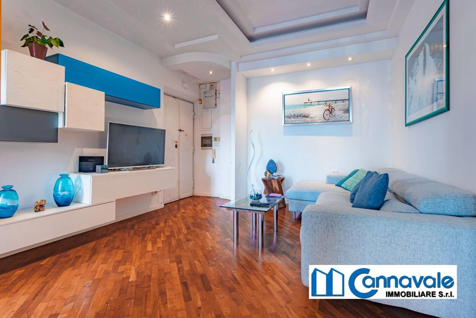 L'appartamento, mantenuto in ottimo stato, presenta una superficie catastale di 88 mq e offre una distribuzione degli spazi interni estremamente razionale e priva di dispersioni: salone di accoglienza, cucina indipendente, camera da letto matrimoniale, seconda cameretta, flessibile e ideale come studio professionale, rara comodità dei doppi servizi, suddivisi in bagno principale e pratico bagno di servizio, balconcino con suggestivo affaccio frontale sul mare.
