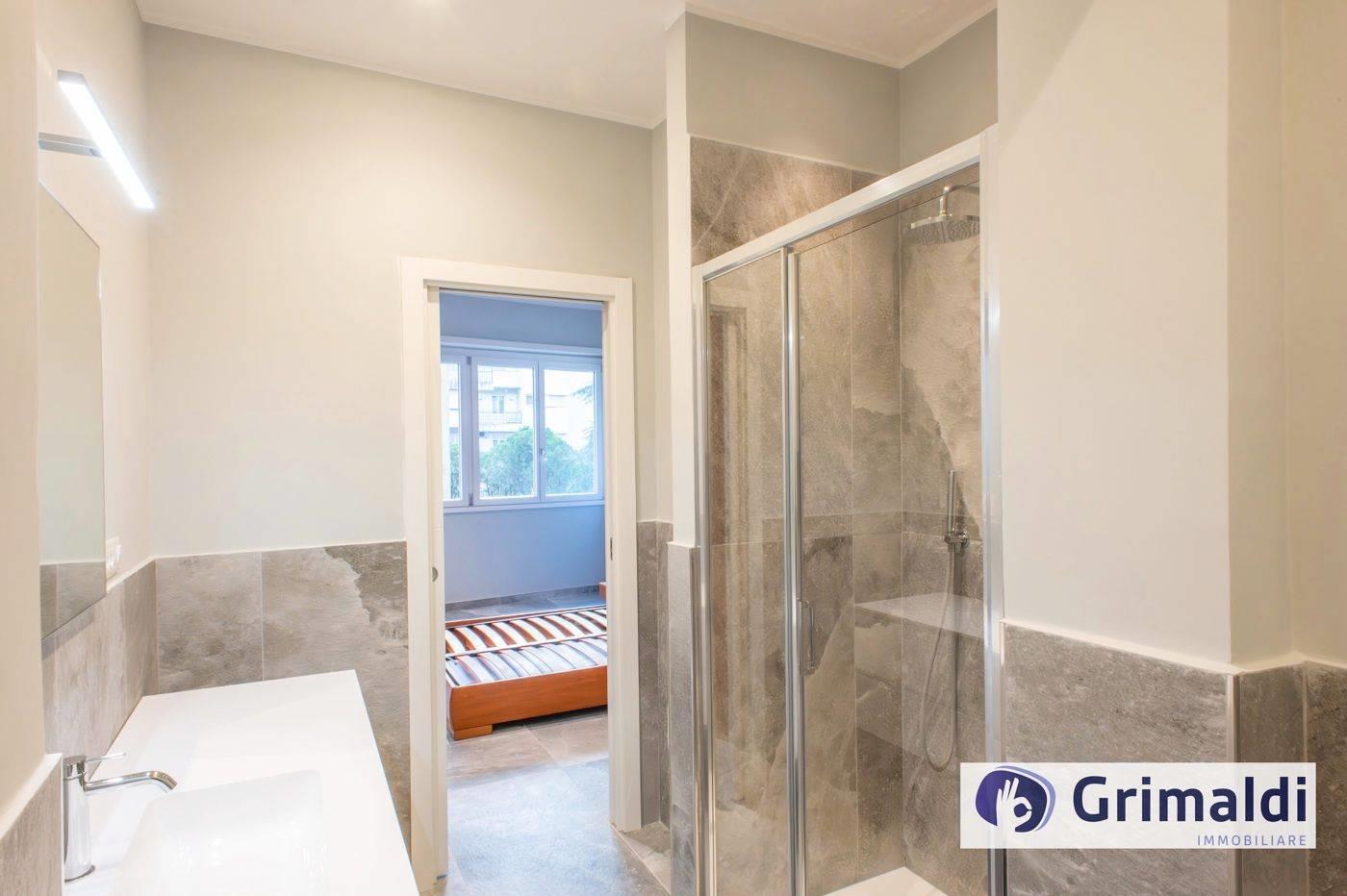L’elegante appartamento di ampia metratura, posto al secondo piano con ascensore, è composto di ingresso con due comodi armadi a muro, soggiorno con cucina a vista con affaccio sul primo balcone, servizio finestrato completo di doccia, disimpegno, tre camere da letto matrimoniali, delle quali due con bagno en suite con doccia ed una con balcone.