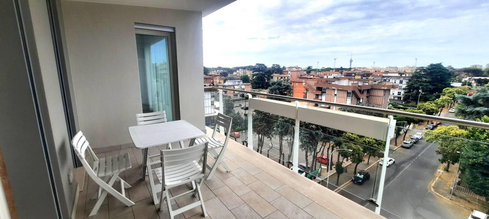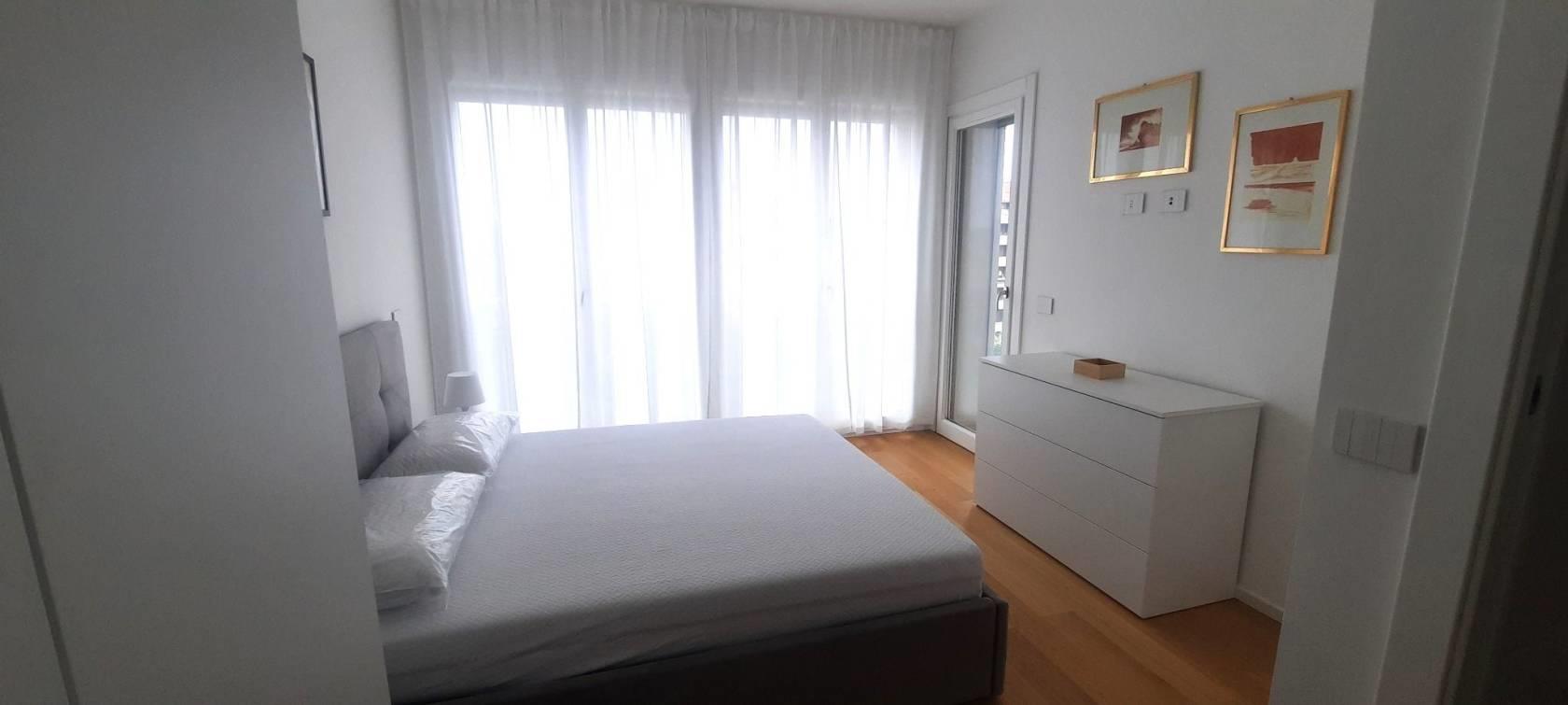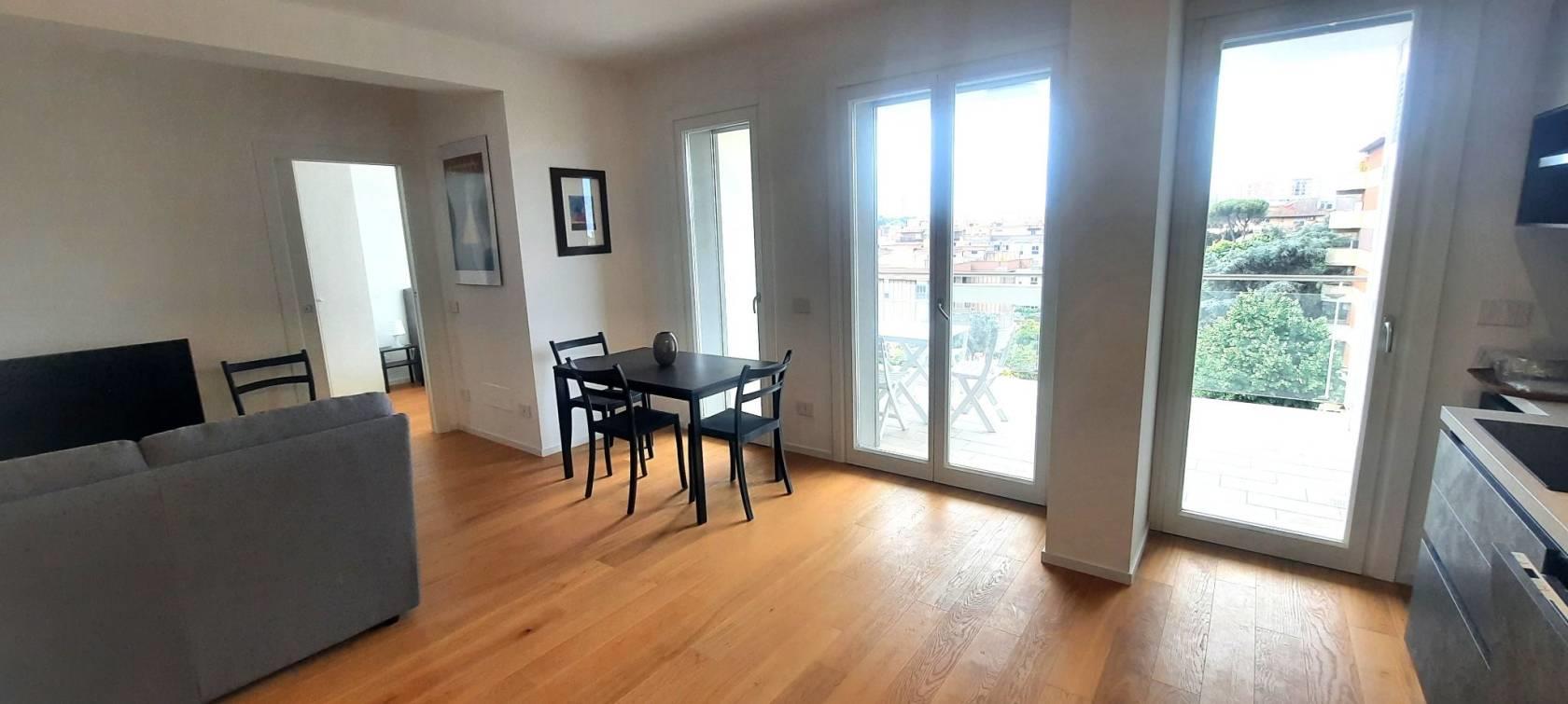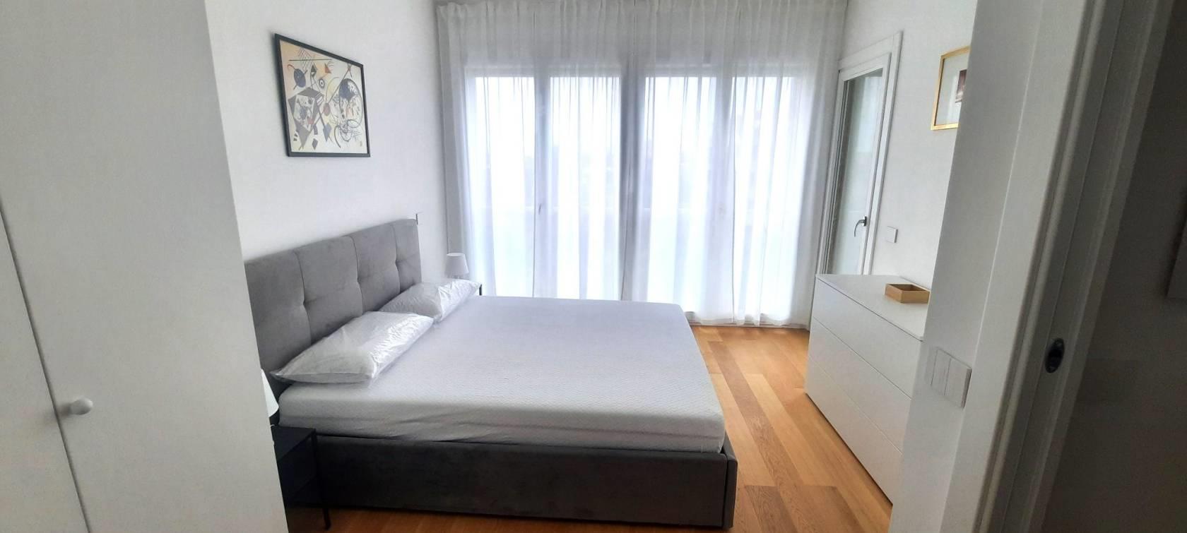 TRANSITORIO per 18 MESI. Tassativamente escluse locazioni lunghe e turistico-ricettive. Offriamo un luminoso bilocale completamente arredato di nuova costruzione posto al sesto piano del palazzo. Internamente sviluppa una superficie di mq.43 suddivisi in salone con cucina a vista, una camera matrimoniale, un bagno con doccia ed un ampio terrazzo abitabile con ripostiglio/lavanderia esterno.