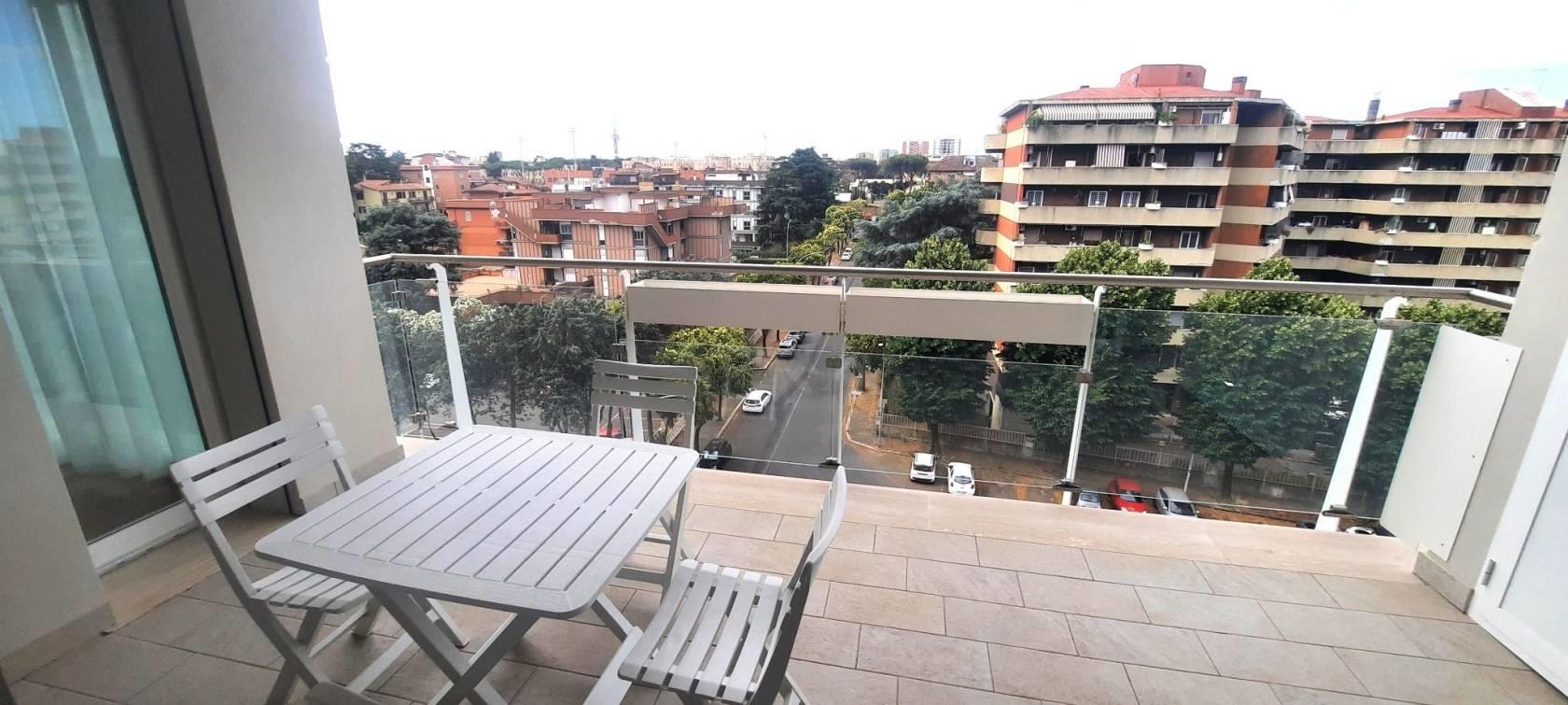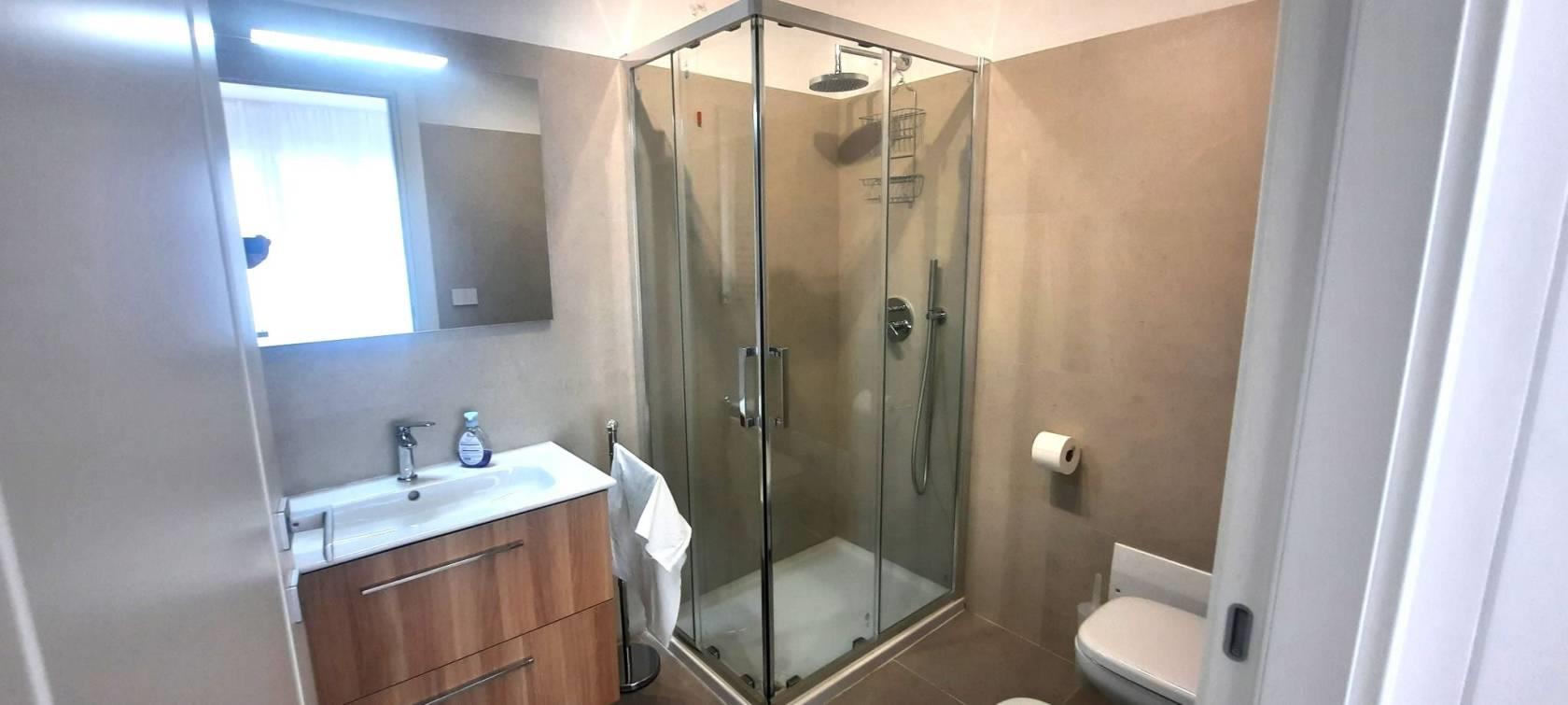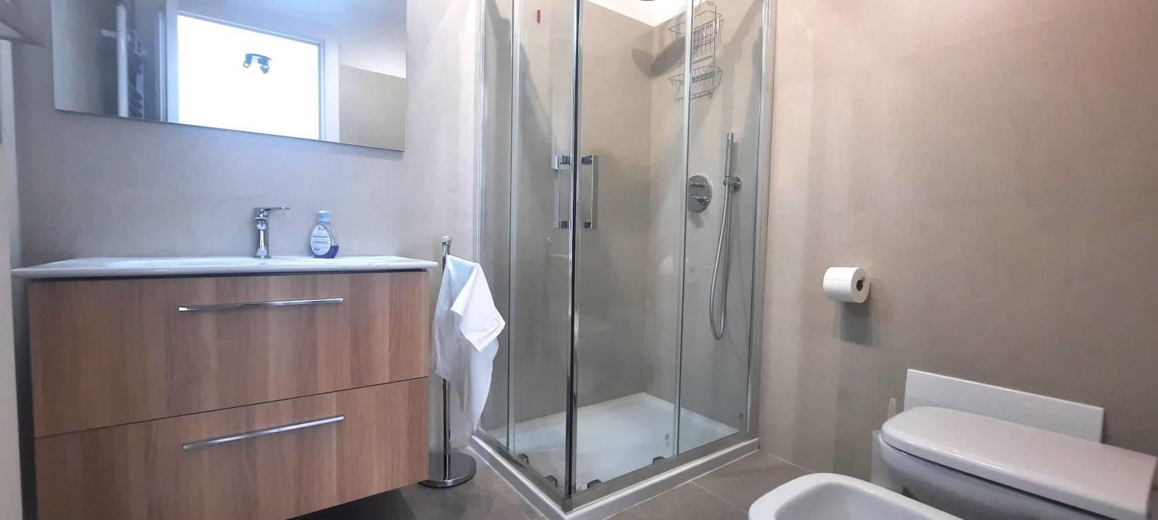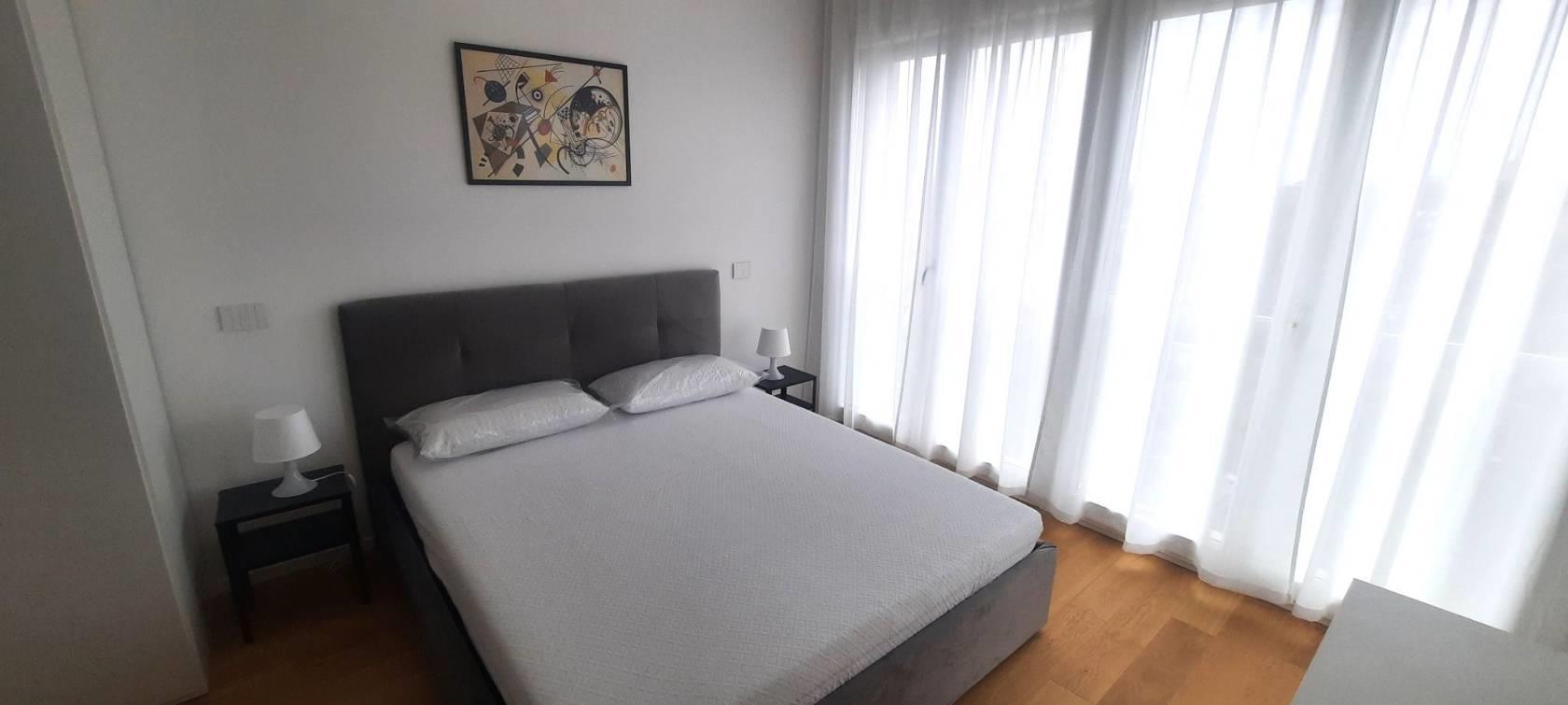 TRANSITORIO per 18 MESI. Tassativamente escluse locazioni lunghe e turistico-ricettive. Offriamo un luminoso bilocale completamente arredato di nuova costruzione posto al sesto piano del palazzo. Internamente sviluppa una superficie di mq.43 suddivisi in salone con cucina a vista, una camera matrimoniale, un bagno con doccia ed un ampio terrazzo abitabile con ripostiglio/lavanderia esterno.