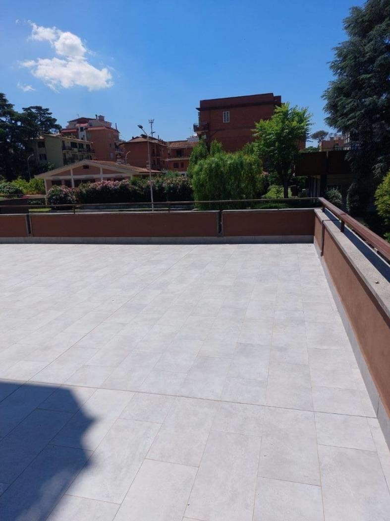 EUR Laurentina e, precisamente in Via Ercolano Salvi, in una palazzina in perfette condizioni in quanto fresca di ristrutturazione, proponiamo un primo piano di mq 117 con una grande terrazza a livello di mq 207 e tre posti auto all'interno del perimetro condominiale.
