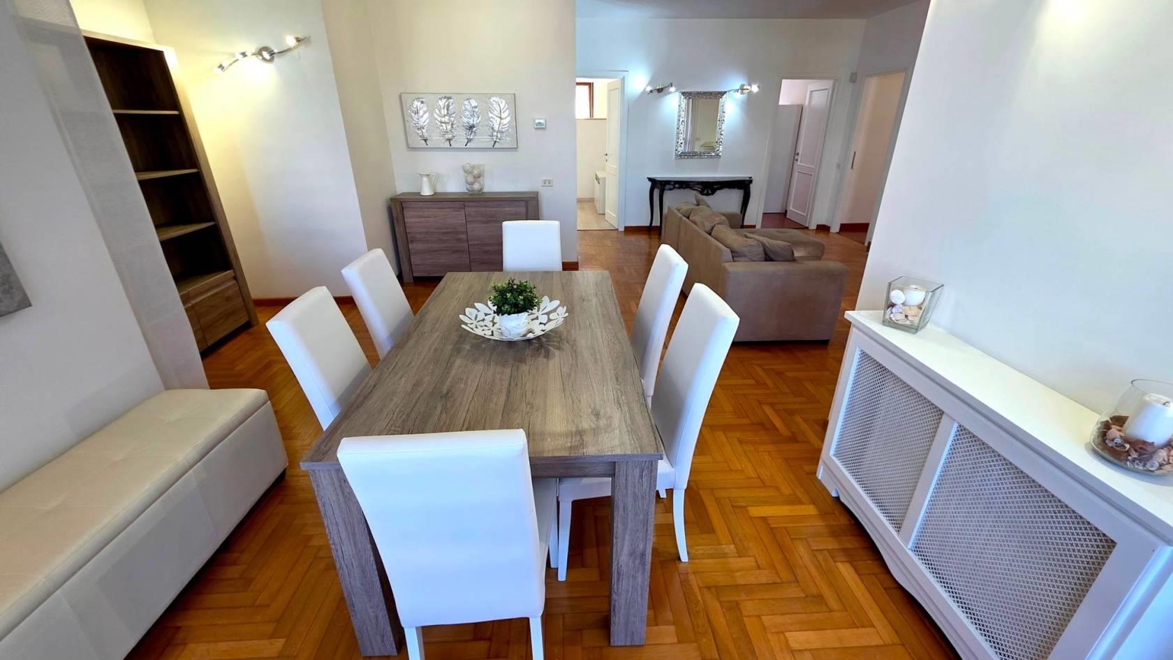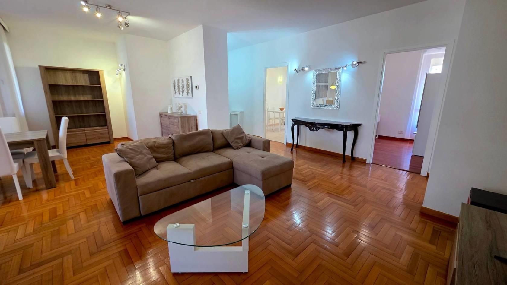 difronte al centro sportivo Ferratella ed a pochi metri dallo Shopping Center Euroma2 - Eurosky Tower, in contesto residenziale signorile, proponiamo in locazione splendido appartamento totalmente ristrutturato, caratterizzato da ambienti molto luminosi ed affacci sul verde. L’abitazione situata al 4° piano con ascensore è composta da ingresso, salone doppio con zona pranzo, cucina abitabile con tinello, due camere da letto, studio, due bagni e ampi balconi perimetrali vivibili, disposti su tre lati. Completano la dotazione dell’immobile, il box auto, rifiniture signorili, pavimenti in parquet, riscaldamento autonomo, cucina completa di elettrodomestici e arredo completo per le altre zone. Il complesso residenziale è ubicato in zona altamente servita di tutti i servizi tra cui scuole, farmacie, supermercati, negozi di vario genere, mezzi pubblici, centro sportivo La Ferratella e l’Ospedale Sant’Eugenio. Disponibilità immediata, Solo referenziati.