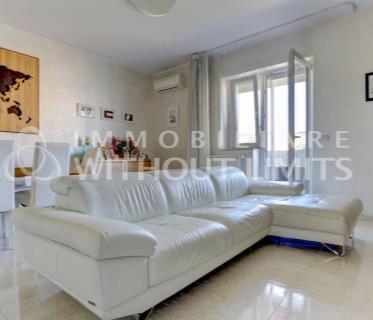 il trilocale di ampia metratura interna e' composto da un ampio salone con adiacente il vano cucina abitabile e terrazzo coperto di 10 mq , disimpegno zona notte , due grandi camere da letto , doppi servizi , ripostiglio.