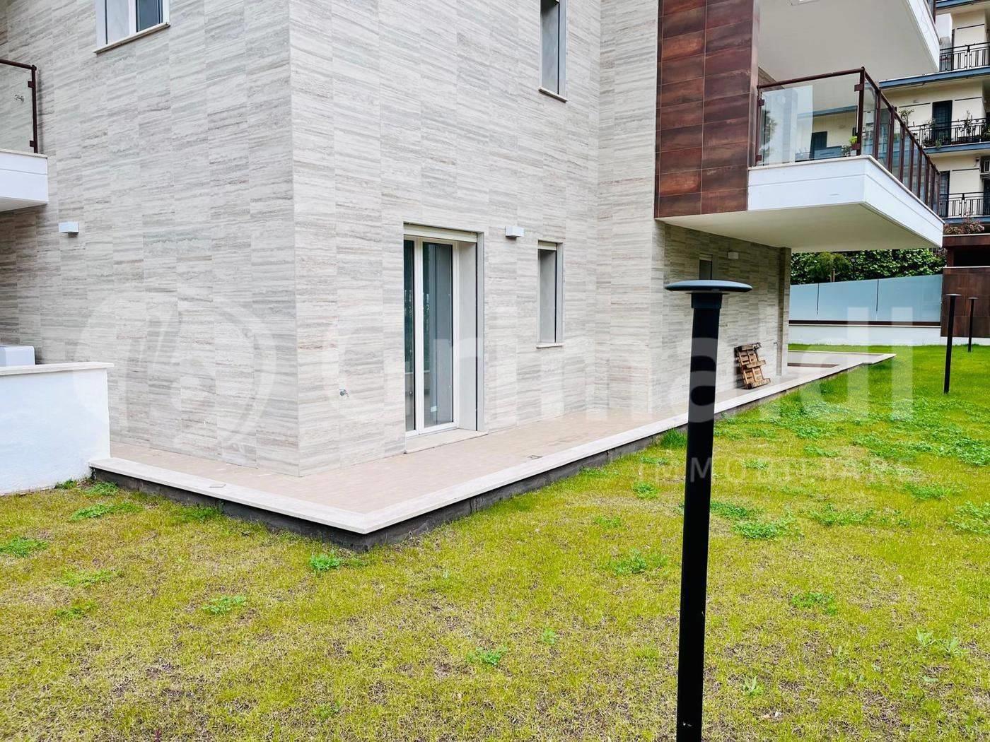 DISPONIAMO DI UN QUADRILOCALE con TERRAZZO e GIARDINO PRIVATO, prezzo Euro 600.000,00, corredato da finiture eleganti ed esclusive, con infissi in legno laccato "Dear", pavimenti e rivestimenti in gres porcellanato "Energie Ker", esterni arricchiti con cristalli e fioriere in cemento bianco, impianti firmati da grandi e storici marchi quali "BTicino" e "Ideal Standard".
