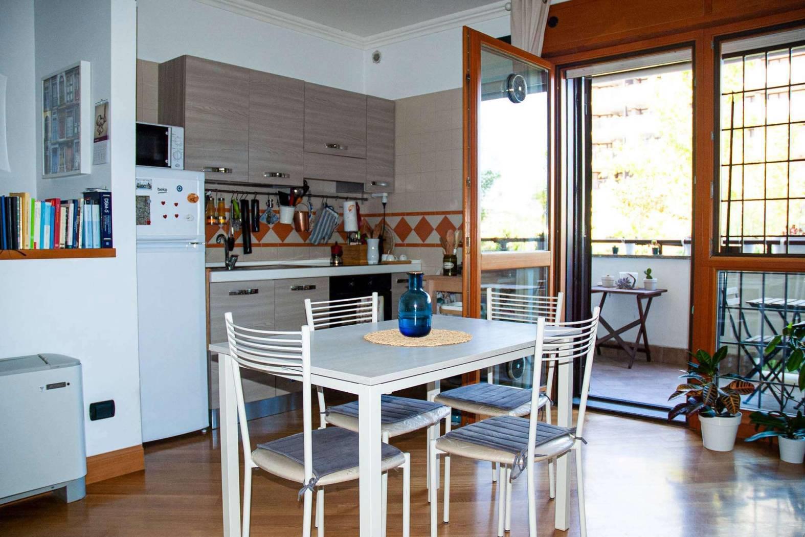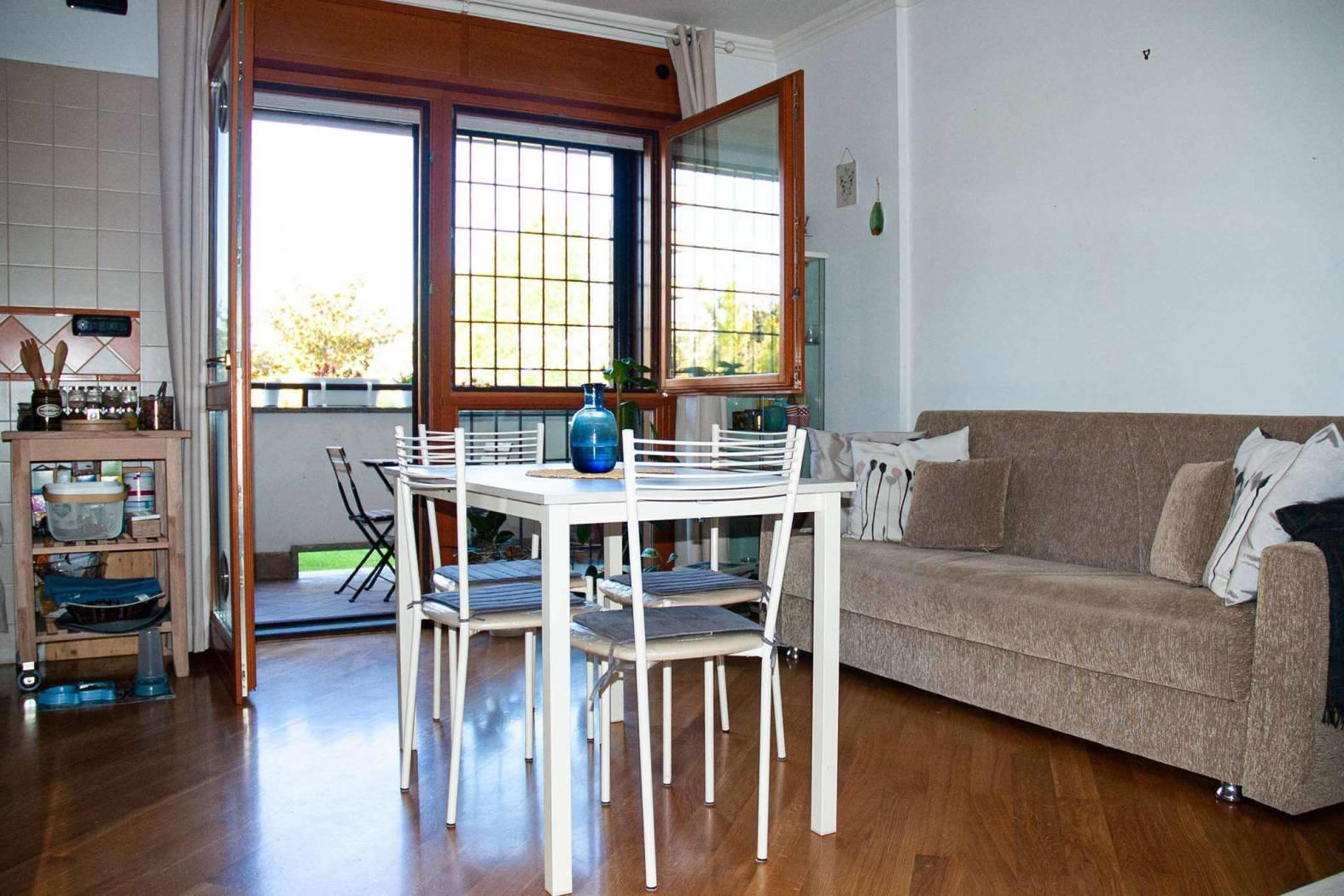 EUR TORRINO Via Amsterdam all'interno del nuovo e signorile complesso residenziale, vendiamo appartamento bilivello con doppio ingresso e così composto: al piano terra un ingresso, un saloncino con angolo cottura, bagno con vasca idromassaggio e balcone abitabile; al livello inferiore una comoda ed elegante scala in legno conduce ad un ampio ambiente che si distingue per i soffitti maestosi (h. 3,70 mt), di circa 33 metri quadri, con finestre posizionate in alto e ingresso indipendente, adatto ad un multiuso. L'unità immobiliare è dotata di finiture di elevato pregio (pavimentazione in parquet, riscaldamento autonomo, porta blindata, videocitofono, tv-sat, aria condizionata e domotica). Nelle spese condominiali indicate risultano inclusi acqua, riscaldamento nei mesi invernali/raffrescamento nei mesi estivi (salvo conguagli sulla base degli effettivi consumi), oltre alla produzione di acqua calda sanitaria.